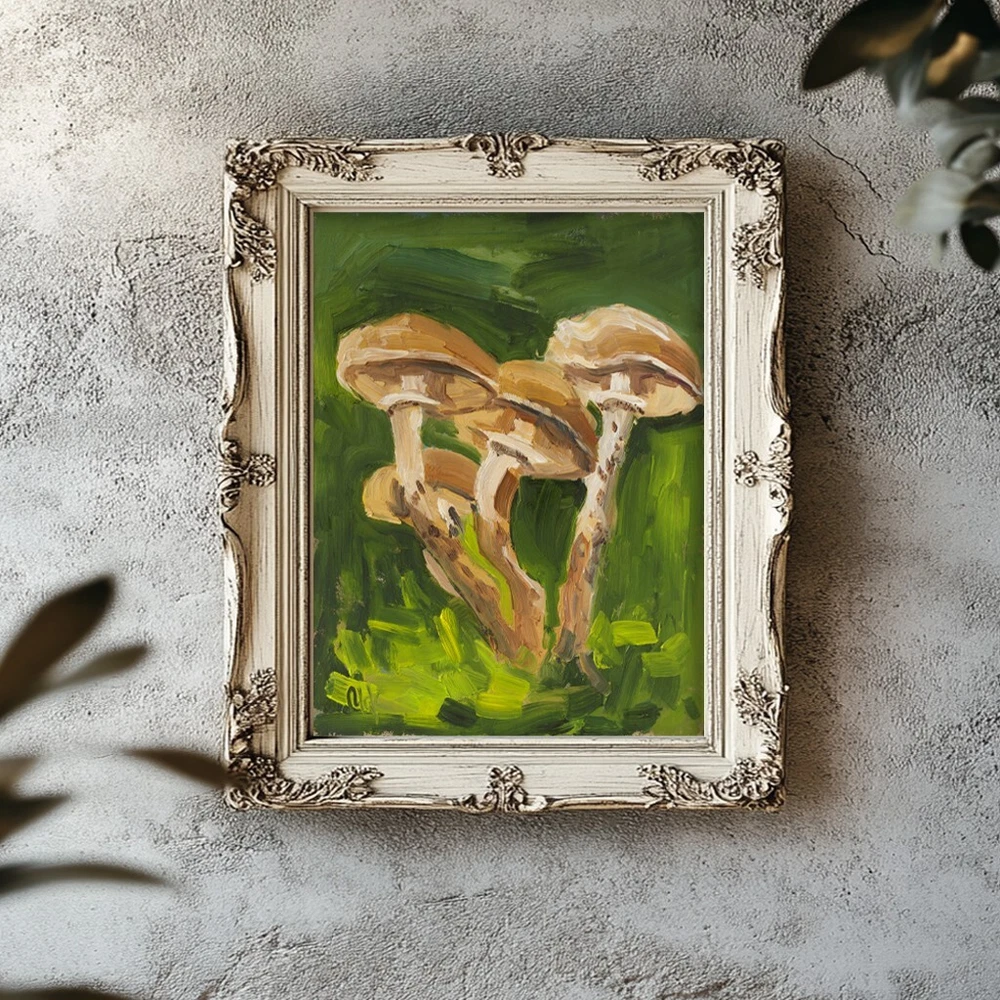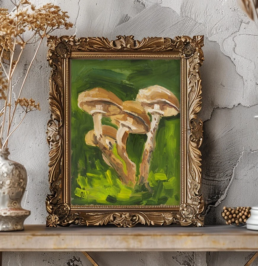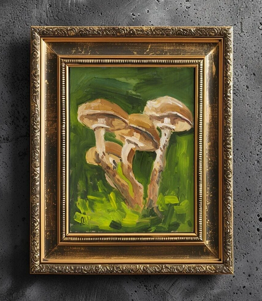 Mushroom Oil Painting Honey Fungus Original Wall Art Forest Artwork Small Wall Decor Mushrooms oil art is an original oil painting, one of a kind hand-painted work of art. This is not a copy or print or reproduction. Just my art, directly from the artist - Nataly Mak. This painting is MADE TO ORDER, direct from my studio. The painting in the photo is already sold. Your painting will be very similar in color and composition, but not exact. 3 business days to paint, and 1-2 weeks or so to dry, as I work in oil. This painting also has impasto texture, which means thicker paint, and consequently a longer drying time. đ Without frame đ Materials: oil paints, cardboard â Size: 8x6 inches â I can draw a different size picture. Just contact me â On the front and back sides of wall art - the author's signature. Please note, that colors shown may vary from monitor to monitor, but I guarantee that the colors are vibrant. Open for commission â„ Thanks for shopping and feel free to message me with any questions! I look forward to working with you! I ship with registered mail and you will get a tracking number. Thank you for your visit! Best Wishes, Nataly