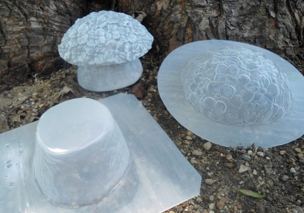 This handmade 2 piece mushroom mold is perfect for creating beautiful shroom sculptures. The mold is made of poly plastic cast and has a total size of 2 & 3/4\"H x 4 & 1/4\"W. The mold is designed for creating flower mushrooms and can be used with plaster, resin, or cement. The brand of this mold is gostatue and it was made in the United States. Get creative with this versatile mold and bring your mushroom sculptures to life!