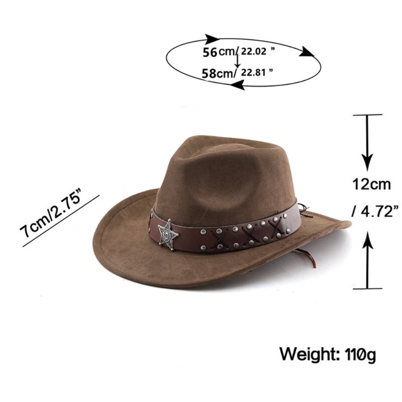 Music Festival Hat Costume Props Hat Adult Winter Autumn Warm Hat Ethnic Fedoras Features: Elevating your styles with our Fedoras hats, use selected Sueded fabric for comfortable and durability. These wide brimmed Fedoras featured a classical yet modern looks, for both men dress hats and women fashion statements. Great for fashion forward individuals and trendsetters, these unisex hats suited for anyone with appreciation for Western cowboy and distinctive taste. Whether for a party, enjoy a music festival, engaging in outdoor activity, or simply accentuating your streetwear, these hats add a touch of personality to any outfit. Our Panama hats offer a great suited of all season, ensuring you stay stylish from spring through winter. Specifications: Product Dimension: Approx. 56-58cm/22.02-22.81inch Texture: Sueded fabric Color: 5 optional color as pictures shown Package Includes: 1PC Western Hat note: Please allow 1-2cm errors due to manual measurement. Due to the differences between different monitors, the picture may not reflect the actual color of the item.