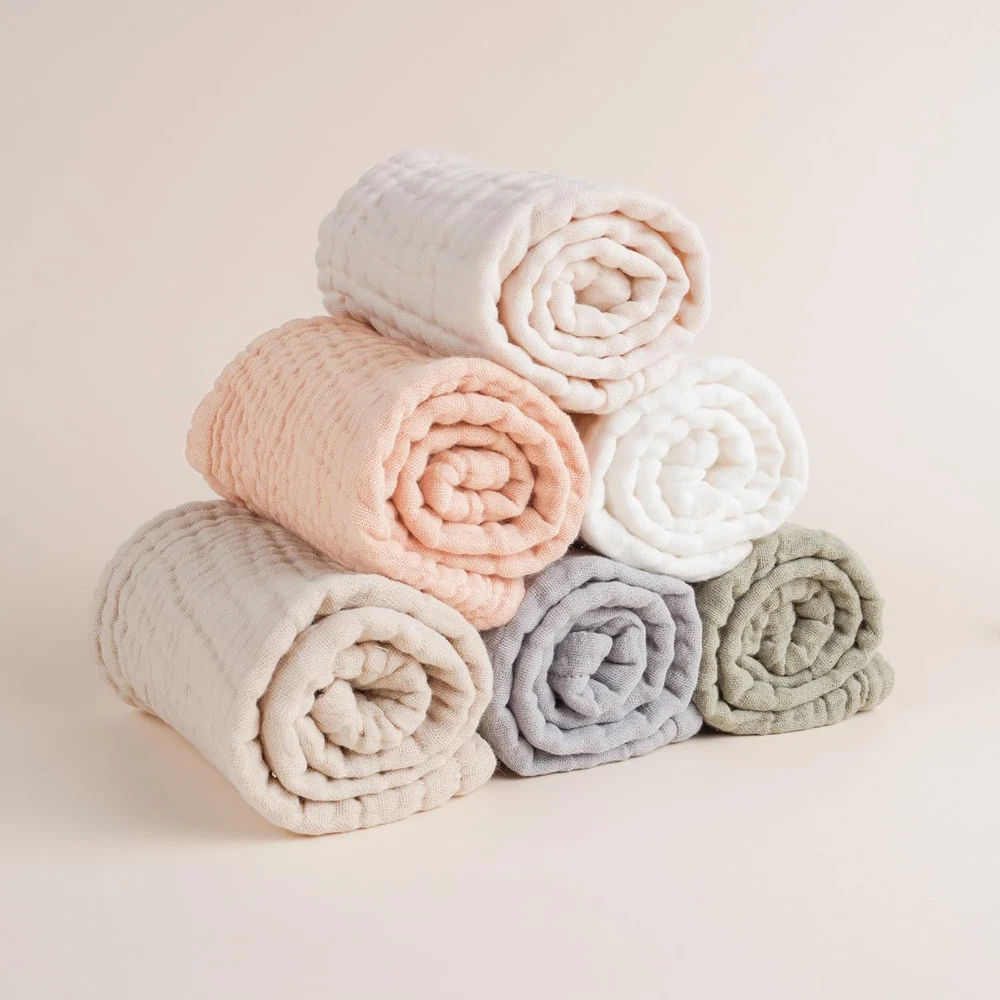 100% Cotton (Muslin) 【SOFT and SUPER ABSORBENT】- These burp cloth are made of 100% cotton (Muslin) for maximum absorption with skin-friendly soft touch. The softest and super-absorbing cotton material is safe for your baby's sensitive skin. 【MULTI-FUNCTIONAL USES】- Baby Burp Cloth Sets can be used in many different ways: they can be used as Burp Cloths, Washcloth, Essential Bibs and Pillow Towel, crafted with ultra-soft fabric to ensure your baby stays comfortable. 【GENEROUS SIZE】- Our muslin burp cloths is way large enough to use. The size is ideal for adequately absorbing the mess slurped up and large enough to provide full coverage for your shoulders without getting any spit-ups on your cloth! 【SET OF 6 UNISEX COLORS】- Each piece is specifically handcrafted with classic prints and handpicked unisex colors that will easily match any outfit, suitable for both boys and girls! A convenient and trendy solution to Newborn Mommies! 【AWESOME BABY GIFT】- Each set are well made and neatly packaged. This 6 pack of baby muslin burp cloths set will make a practical and thoughtful gift on baby showers, baby registry, Christmas, Housewarming, or on any special gifting occasion. Product Description Muslin Baby Burp Cloths Awesome Baby Essentials Soft and Absorbent The softest and super-absorbing cotton material is safe for your baby's sensitive skin. Full Shoulder Coverage Large enough to provide full coverage for your shoulders without getting any spit-ups on your cloth! Multi-Functional Use Sets of baby burp cloths can serve multiple purposes, including use as a burp cloth, washcloth, essential bib, and pillow towel. Best Baby Shower Gifts These lovely burp cloths are suitable for both boys and girls, and easy to wash and dry quickly. Chic Solution for Drooling Burp Cloths for Everyday Use Konssy baby products-caring with love Add to Cart Add to Cart Add to Cart Add to Cart Add to Cart Add to Cart Add to Cart Customer Reviews 4.9 out of 5 stars 259 4.9 out of 5 stars 1,468 4.8 out of 5 stars 2,015 4.8 out of 5 stars 798 4.9 out of 5 stars 170 4.8 out of 5 stars 197 4.8 out of 5 stars 163 Price $18.99 $ 18 . 99 $18.99 $ 18 . 99 $19.99 $ 19 . 99 $16.99 $ 16 . 99 $16.99 $ 16 . 99 $13.99 $ 13 . 99 $17.99 $ 17 . 99 Fabric Type 100% Muslin Cotton 100% Muslin Cotton Cotton on Front Fleece on Back 100% Muslin Cotton Polyester Cotton on Front Fleece on Back 100% Muslin Cotton Feature Soft, Absorbent, Skin-friendly Soft, Absorbent, Skin-friendly Soft, Absorbent, Skin-friendly Soft, Absorbent, Skin-friendly Soft, Stretchy, Adorable Soft, Absorbent, Skin-friendly Soft, Absorbent, Skin-friendly Pieces 6 6 8 8 2 6 6 Machine Washable ✔ ✔ ✔ ✔ ✔ ✔ ✔ Gender Great for baby boys baby girls Great for baby boys baby girls Great for baby boys baby girls Great for baby boys baby girls Great for baby boys baby girls Great for baby boys baby girls Great for baby boys baby girls