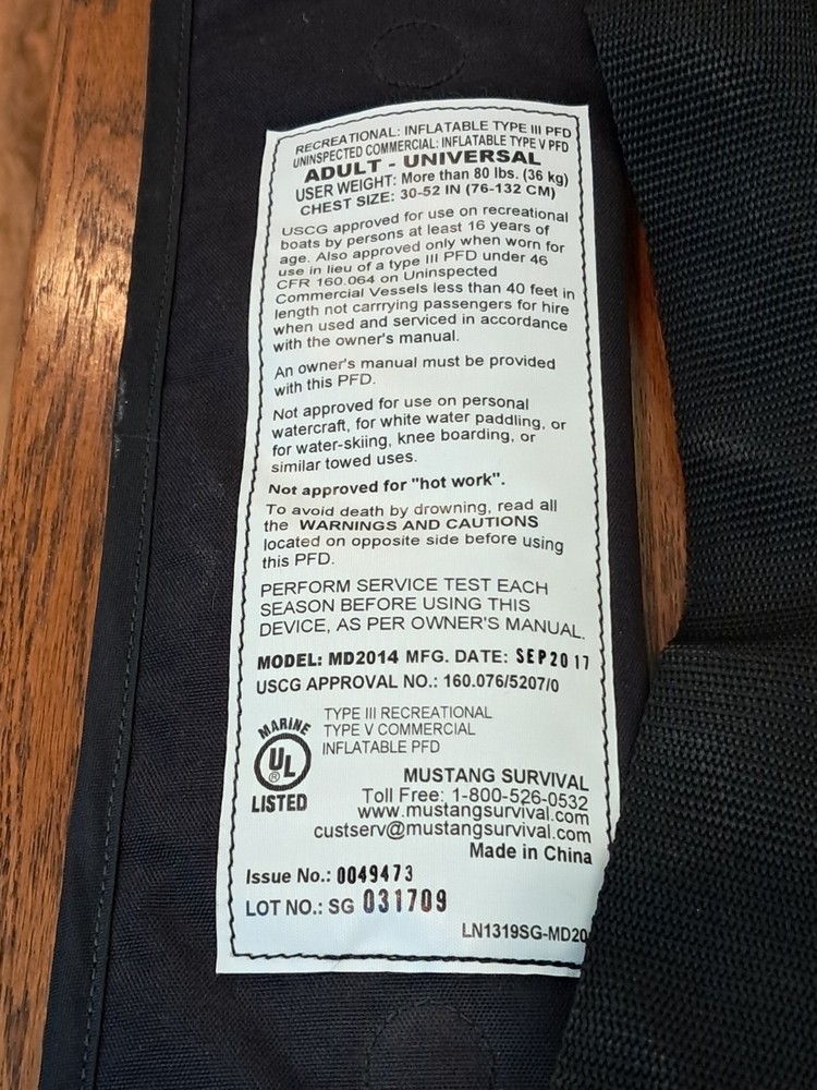 Mustang Survival Inflatable Life Jacket - Adult Universal MD2014 This item was donated to our non-profit organization.