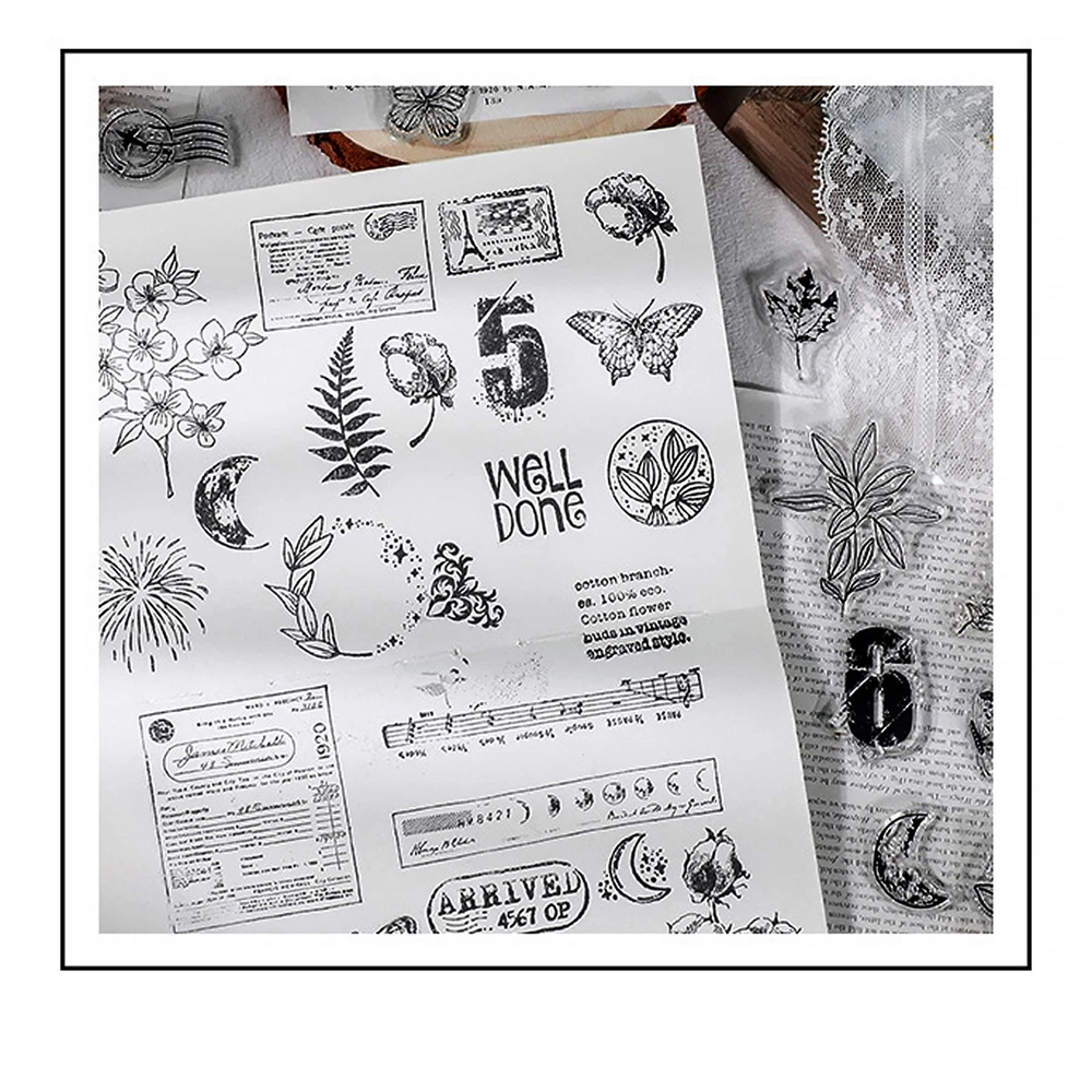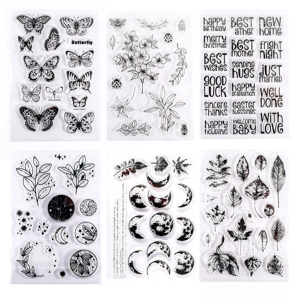 Festival thematic patterns- These clear stamp cards feature various festival animals and plants elements, including greeting words, flowers, leaves, butterflies, and moons, etc. printed on the back of these cards, easy for you to express your love to friends, lover, families and classmates. Quality Material- These silicone clear stamps are made of durable silicone material, which is safe and lightweight, not easy to break or deform, allows you to apply for a long time, just press on the paper or card gently, it will appear a variety of patterns. Easy to Use - Simply place the stamp on an acrylic block (not included), and press it onto paper or cards. Let them air-dry, and your exquisite work is complete. Please note that you should clean them with water after use for more convenient use next time. Creative Ornaments- Once you've stamped a design onto a piece of paper or card, you can use a craft ink pad to add color and create an exquisite embellishment for holiday cards, scrapbook pages, journaling, or any other paper craft projects. These stamps are also perfect for creating unique and creative gifts for your friends. Quantity & Size- You will receive 6 sheets of festival-themed clear stamps in 6 different styles, with each sheet measuring 4.3 x 6.2 inches (11 x 16cm).