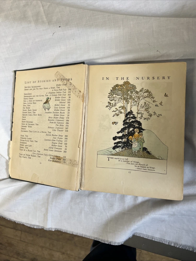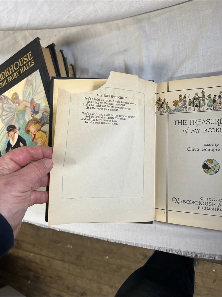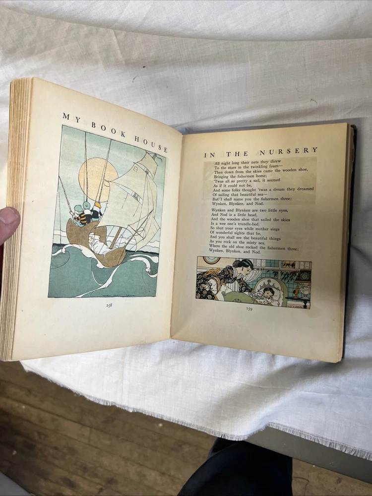 Wonderful complete set of 1st edition My Book House Volumes 1-6 by Olive Beaupre Miller. Published 1920-1921 by The Book House for Children of Chicago, Illinois. The books are in very good antique condition considering the age and the fact that they are children's books, with expected wear to the covers, edges, and spines. The conditions get better as the series goes on with less losses, pages do show foxing/discoloration, page tears from age and turning. Please see all photos. The collection and additional condition includes: (1) In The Nursery . 1920 Break to inner binding, 5-12 are loose, 95, 113, 205 torn and tape, missing pages 13-16. other minor wear (2) Up One Pair of Stairs . 1920, 1925 minor looseness on the outside edge of back cover (3) Through Fairy Halls . 1920 tear on first page (4) The Treasure Chest . 1920 (5) The Tower Window . 1921 (6) The Latch Key. 1921. 1925 See pictures for complete condition details. This item comes from a smokefree home, I accept paypal or you can pay when you pick up an item, any other payment questions please email me. I will combine/discount shipping charges on multiple purchases to help save you money. if you buy multiple items, please wait for me to send you an invoice with the discounted shipping on it. Shipping to Hawaii, Alaska, Puerto Rico, and OTHER COUNTRIES is extra, please email me for international shipping rates, -----------------Insurance is an additional charge, please ask for insurance if you would like it. Insurance needs to be purchased by the customer, in order to have any coverage for shipments lost or damaged by USPS, FedEx, or UPS. I use Fed Ex ground, UPS, and USPS for shipping, please make sure you are able to receive packages via all these carriers. Please make sure to have the address you want this shipped to added as the authorized address on your paypal account. We can only ship to authorized paypal addresses and we do not accept emails to change the shipping address. ----------------- 30 Day money back return policy, if returned due to buyer changed their mind, the buyer will pay for shipping product back and the original shipping. The refund will be processed upon my receipt of the returned item and full purchase price will be refunded. The item must be in the same condition as when purchased. If item needs to be returned due to my error, I will pay for all shipping. any questions... Please Email me before bidding! Thanks for bidding! 46A