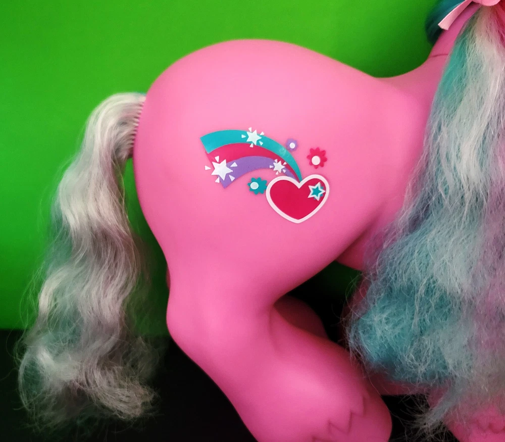 HomeMy Little 10" Pony Fakie Cabbage Toy Pink With Heart Rump Pink Aqua Mane