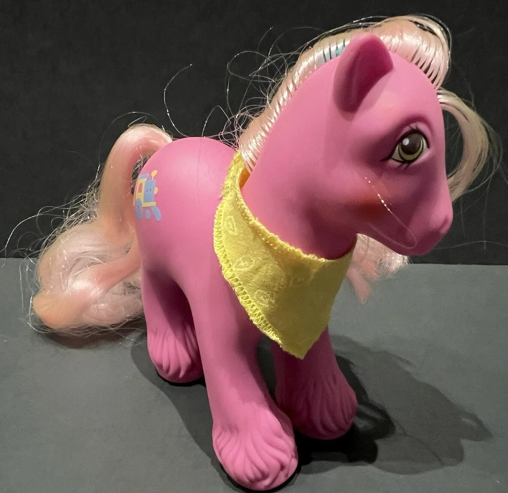 Country/Region of Manufacture: Hong Kong Type: Action Figure Customized: No Series: G1 Vehicle Type: Train Signed: No Animal Species: Horse, Pony Packaging: Without Packaging Material: Plastic Personalize: No Character: Steamer Color: Pink Movie: My Little Pony Brand: Hasbro Features: Hat, Bandana Franchise: My Little Pony UPC: Does not apply Original/Licensed Reproduction: Original MPN: Does not apply Certification Number: na Theme: Horses Vintage: Yes TV Show: My Little Pony Items Included: Hat, Bandana Year Manufactured: 1987 gtin13: Does not apply Custom Bundle: No Time Period Manufactured: 1980-1989