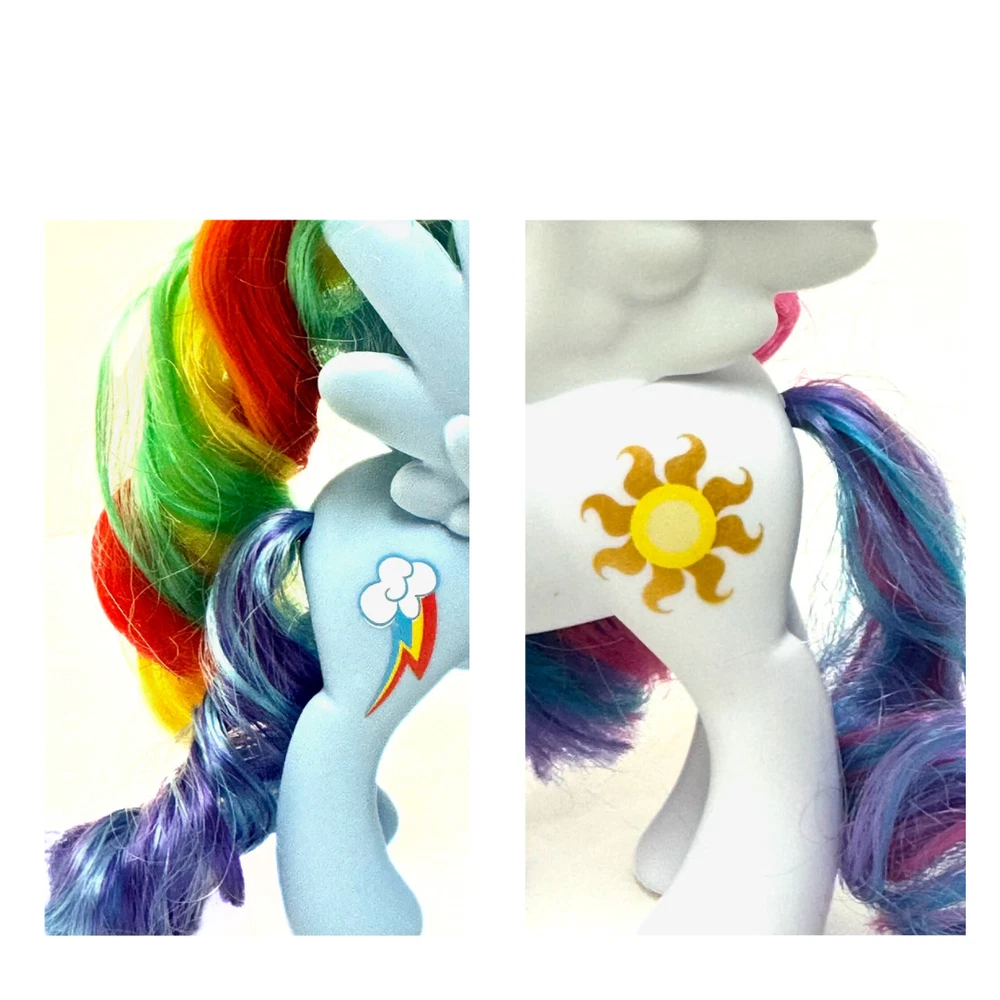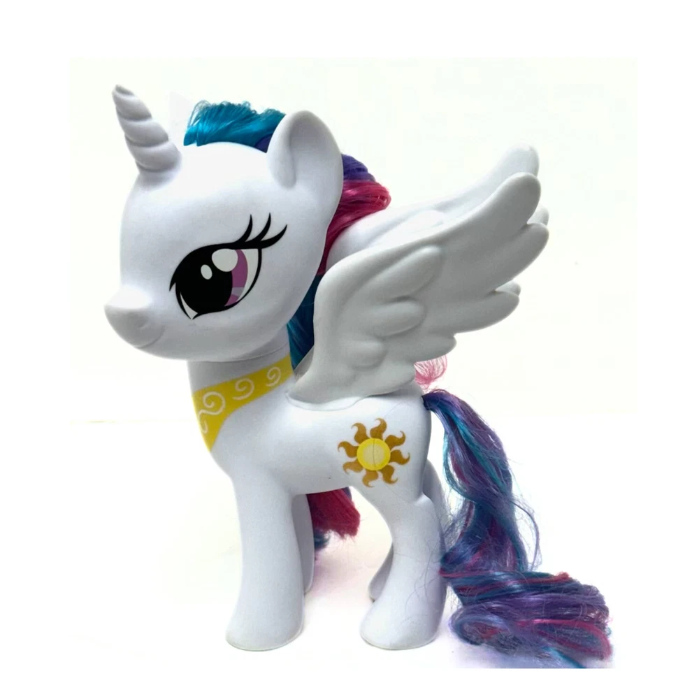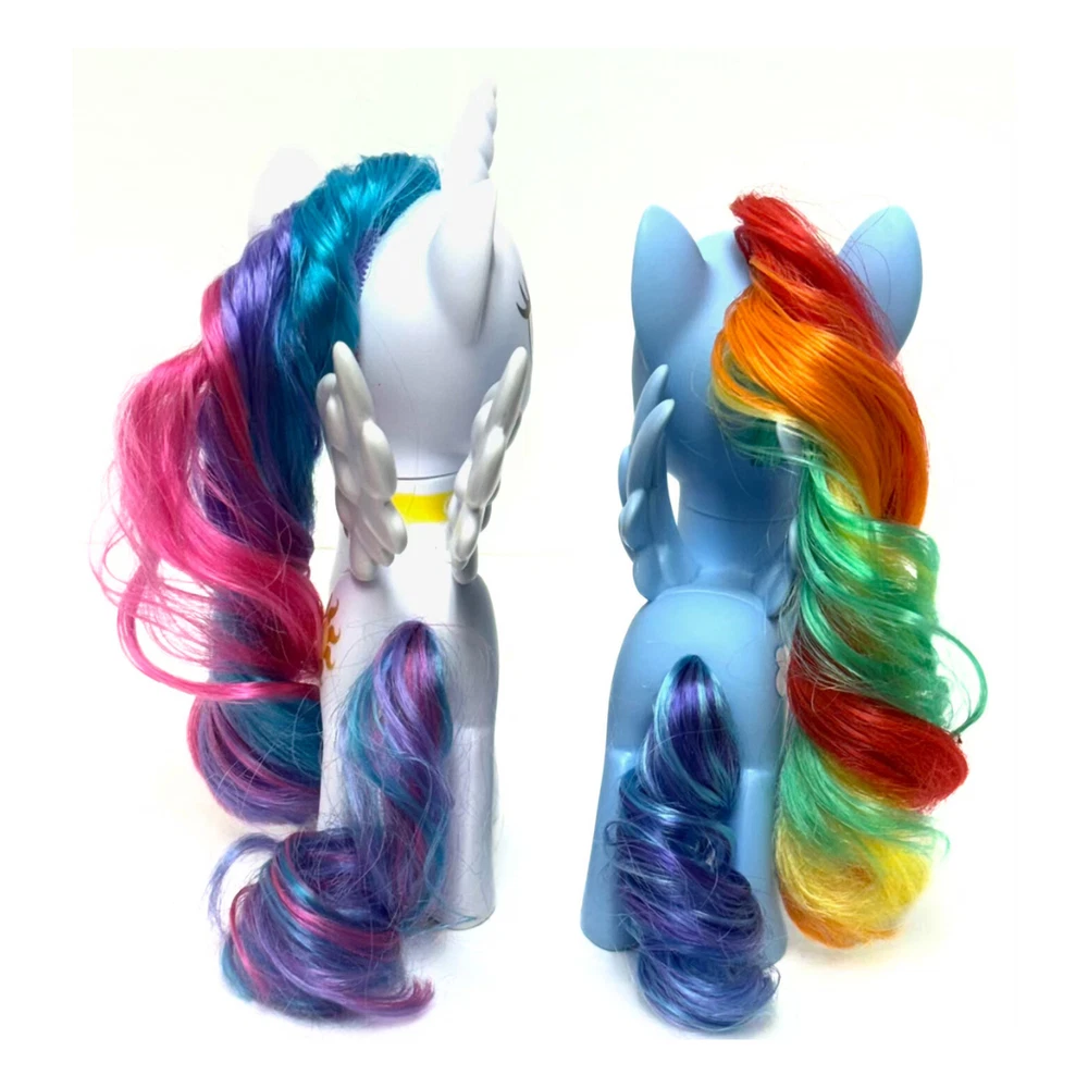 MY LITTLE PONY Pretend Play Action Figures : Set of 2 Brand : Hasbro : Condition ( Applies to both ) : Pre - Loved ( No Smells / No Stains / No Plastic Flaws ) : PLEASE SEE ALL PICTURES : Features : *** Each Figure Has a Posable Head *** : ** Princess Celestia Unicorn Pegasus Toy ** - Created : 2016 - Dimensions : Height - 6in x Width - 4.5in - Winged Unicorn with brushable multicolored hair - Beautiful Bronze & Yellow SUN MARK - Original My Little Pony Markings under feet (see picture) : ** Rainbow Dash Toy ** - Created : 2013 - Dimensions : Height - 6in x Width - 4in - Winged Pony with brushable multicolored hair - Beautiful Multicolored CLOUD RAINBOW MARK - Original My Little Pony Markings under feet (see picture) : Thank you for your interest. : Shipping : - Toys will be securely packaged in a box. - Mailed Within 3 Business Days.