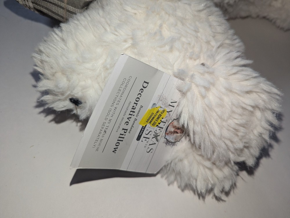 My Texas House 12" x 17" Bonnie Bandana Dog Stuffed Faux Fur Decorative Pillow. Condition is New with tags. Shipped with USPS Ground Advantage.