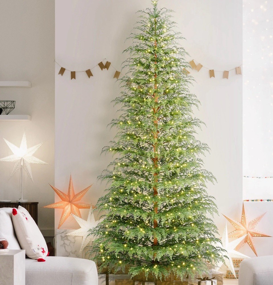 The My Texas House 9ft Cypress Pre-Lit Christmas Tree is a festive addition to your holiday decor. This artificial tree stands at 9 feet tall and is adorned with 600 warm twinkle lights, creating a glowing and inviting atmosphere for the Christmas season. The tree is designed with a seasonal theme in mind, making it a perfect choice for anyone looking to add a touch of sparkle to their home during the holiday season. Made of plastic material in a classic green color, this Christmas tree is sure to bring joy and cheer to your festive celebrations.