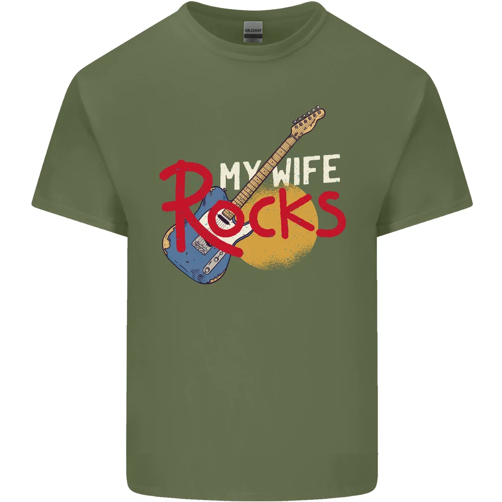 My Wife Rocks Funny Music Guitar Mens Cotton T-Shirt Tee Top