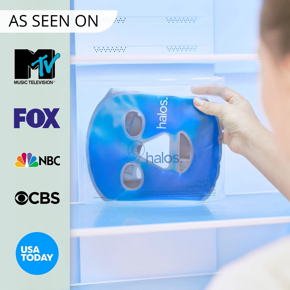 MyHalos Ice Face Mask - Frozen Face Mask for Pain Relief, Migraine & Wisdom Tooth Surgery - Our Cooling Face Mask for Swelling, Puffiness & Stress Relief - Hot or Cold Gel Face Mask Cold Pack 【Helps Relieve Pain & Swelling】Our cooling ice mask for face and eyes helps provide soothing relief from migraines, sinusitis, wisdom teeth, bruising, irritation, injury or post-surgery. 【Bring the Spa To Your Home】Relax and unwind or take your relaxation to the next level with our full-face ice packs. This gel-cooling face mask and eyes work like a full face ice pack to help revitalize tired skin and reduce facial puffiness. Our cooling face mask may help soothe acne, eczema & rosacea by reducing inflammation and redness. 【Flexible Full Face Coverage】Our ice face masks for women and men are made from soft material that easily conforms to the contours of your face, allowing more contact with your eyes, cheeks, jaw, forehead, nose and temples. Our advanced gel technology makes our ice pack face mask stay hot or cold for longer, unlike the average facial ice mask. 【Comfortable Fit】Comfort is key. That's why we designed our hot and cold mask for face to fit you perfectly. Unlike other face and eye masks, our cooling masks for face and eyes are made with plastic that feels soft against your skin. In addition, the elasticated strap adjusts to all head sizes and helps keep the cold eye mask in place. 【Buy with Confidence】All of our products are designed to be safe, effective and reliable. Shop our variety of cooling face masks for women and men. We're confident you'll love using your new ice pack, but if you are unhappy with our product, we offer a 100% money-back guaran tee with our 1-year assurance. Shipping We offer FREE shipping on all orders! We ship within Three business days of payment, usually sooner. We use a selection of shipping services such as UPS, FedEx, USPS etc. We only ship to the lower 48 states, no APO/FPO addresses or PO Boxes allowed. Local pickups and combined shipping options are not provided at this time. Return You can return a product for up to 30 days from the date you purchased it. Any product you return must be in the same condition you received it and in the original packaging. Please keep the receipt. Payment We accept payment by any of the following methods: PayPal Please pay as soon as possible after winning an auction, as that will allow us to post your item to you sooner! Feedback Customer satisfaction is very important to us. If you have any problem with your order, please contact us and we will do our best to make you satisfied. Contact Us If you have any queries, please contact us via ebay. We usually respond within 24 hours on weekdays. Please visit our eBay store to check out other items for sale! Thank you for shopping at our store.
