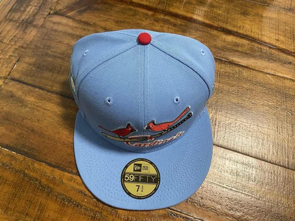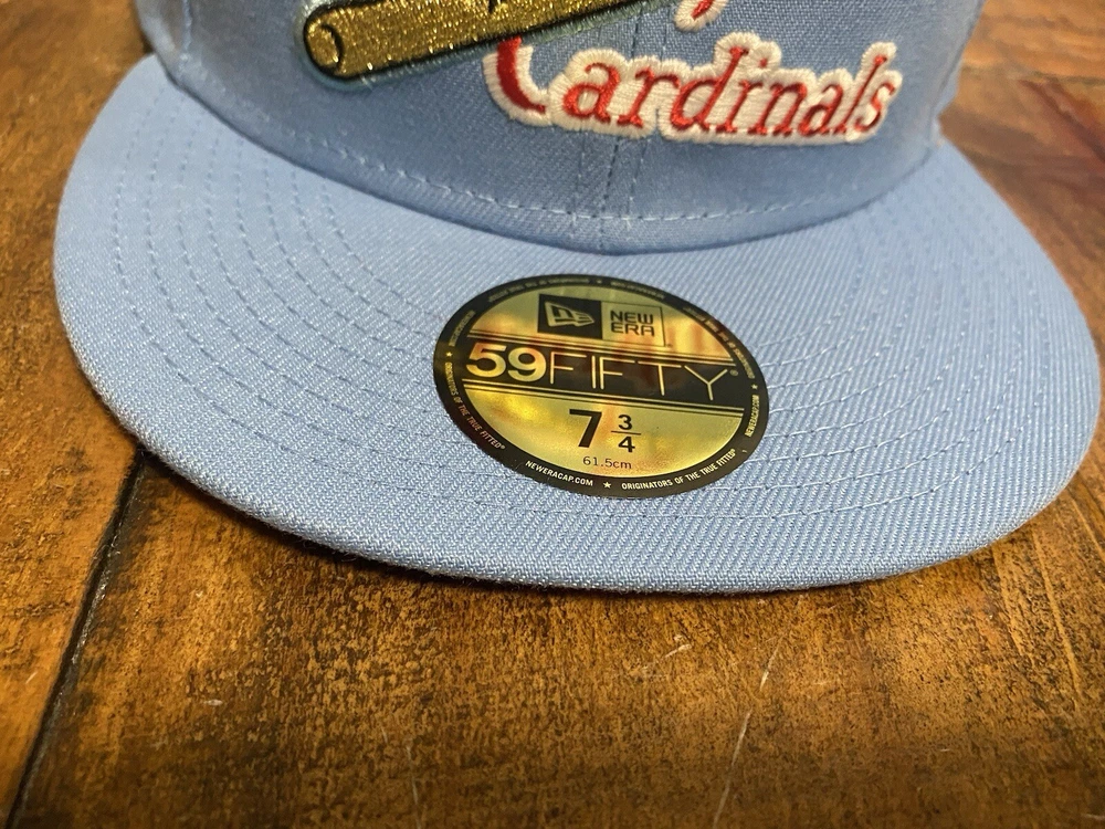 UPC: Does not apply Color: Sky Blue/Red/Gold-Serape Country/Region of Manufacture: Bangladesh gtin13: Does not apply Sport: Baseball-MLB Officially Licensed: Yes Brand: New Era Pre & Post Season: World Series Size: 7 3/4 League: Major League (MLB) Team: St. Louis Cardinals Modified Item: No Product: Cap, Hat