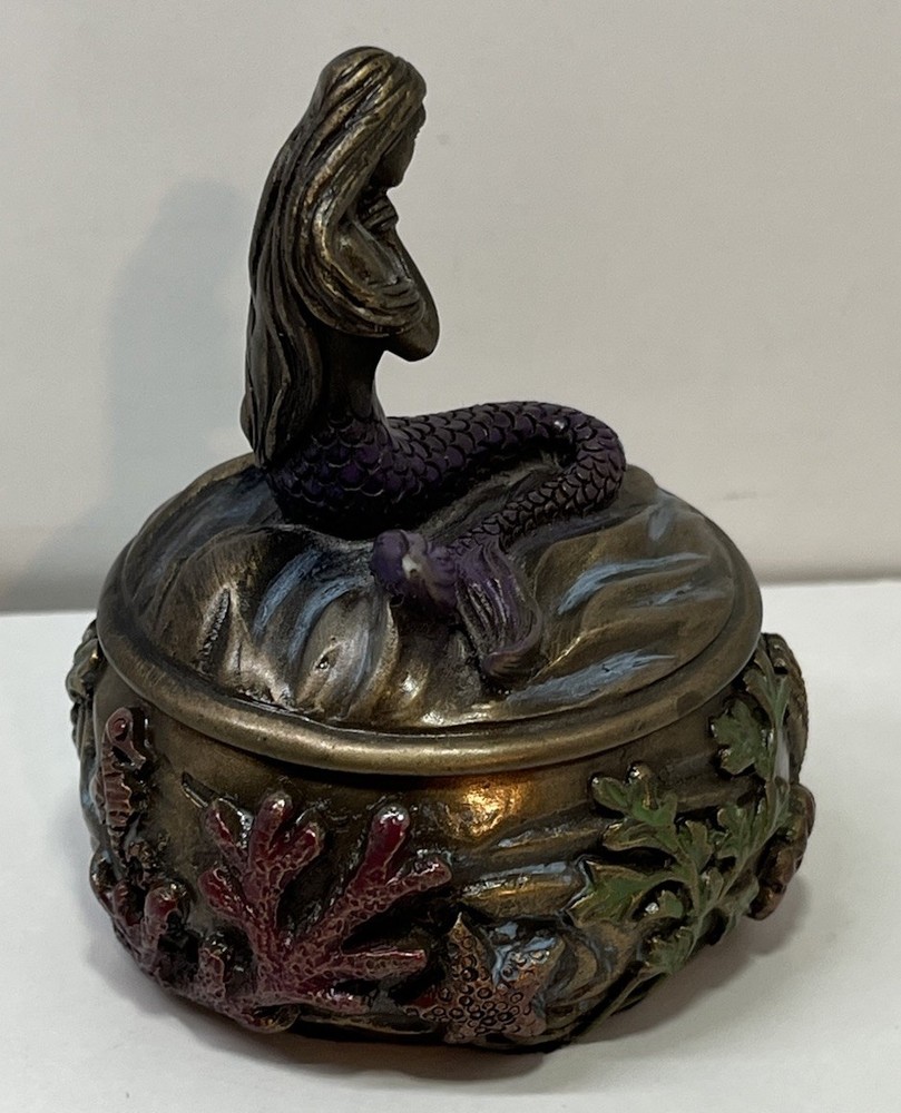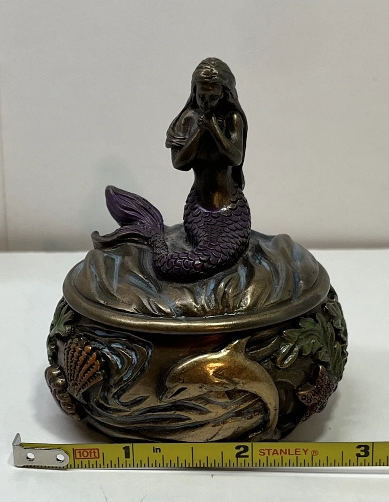 Ocean Mermaid Jewelry Trinket Box Mystical Aquatic Sea Creature Art Nouveau With Lid - This Unique Piece Is In Great Used Condition. Measurements included in images. Please thoroughly inspect all photos SHIPS CAREFULLY
