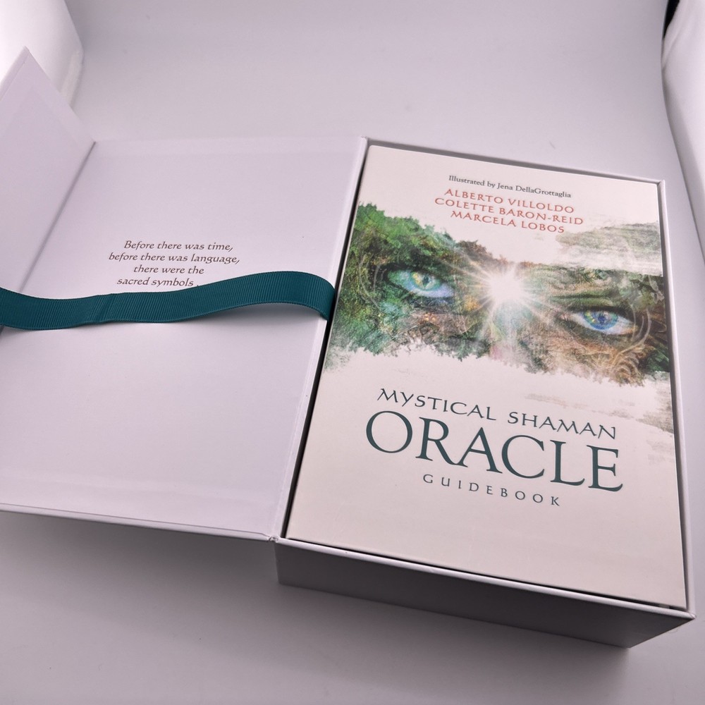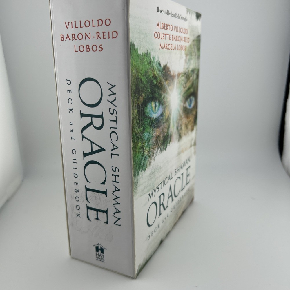 Mystical Shaman Oracle Divination Card Deck Book Game Baron-Reid Tarot. Card and book Never used. The outside box has a blue mark (likely permanent) , there is a tear on the edge of the box jacket and some sticker residue which can be removed. See photos as part of description