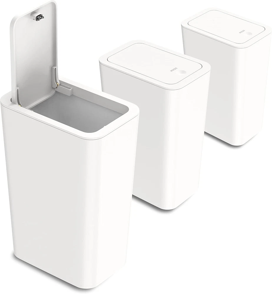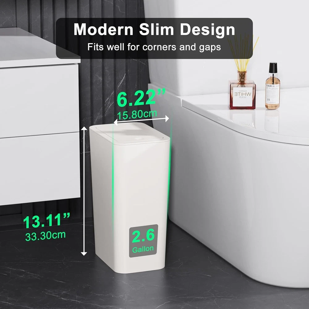 N. NETDOT 3 Pack 10L / 2.6 Gallon Small Trash Can with Gal, Off White Product Details Brand: N. NETDOT Capacity: 2.6 Gallons Color: Off White Opening Mechanism: Press-Top Material: Plastic Recommended Uses For Product: Bathroom,Kitchen,Office Room Type: Bathroom,Bathtub,Bedroom,Kitchen,Office,Room Special Feature: Compact, Pop-Up Lid, Odor Seal Shape: Rectangular Finish Type: Polished Product Dimensions: 8.74"L x 6.22"W x 13.1"H With Lid: Yes Unit Count: 3.0 Count Manufacturer: guangzhouchuangyipinmaoyiyouxiangongsi Size: 2.6 Gal Item Weight: 2.77 pounds Country of Origin: China Item model number: CYP_TranshCan Finish types: Polished Batteries required: No Included Components: trash can Fits Almost Everywhere: A stylish small trash can with a modern slim design that looks great and easily fits into narrow openings and small spaces. Fits well in small kitchens, bathrooms, offices or wherever space is limited Compact Design: This rectangular slim Garbage can is the great size for storing inside cabinets, underneath counters, under sinks and other small nooks and spaces in your bathroom; The small bathroom trash cans with lids tuck conveniently next to the toilet or beside a shower or bathtub and keep garbage, recycling, and other small items out of sight Pop-up Design Lid: The small trash can is design with a pop-up design lid, just need simply tap the button to open or closed the lid. The press top lid can allows you to store it in plain sight; The trash is contained out of view.The plastic ring can fix the garbage bag and prevent the garbage bag from slipping away Efficient and Sturdy: Crafted from premium-grade ABS material, this small trash can with lid boasts high durability and resistance to wear and tear. With a compact 2.6-gallon capacity tiny wastebasket, it's great for use in your bathroom, bedroom, or office. Its lightweight design allows for effortless transportation, making it a flexible solution for your disposal needs Chic & Versatile Trash Can Set: Our collection of three trash cans showcases a modern design that enhances the beauty of any room. Each slim garbage bin is easy to clean and maintain, making it a practical choice for your home or office This off white small trash can is the great choice for any home or office. Whether you need a small kitchen trash can, a slim bathroom trash can, or a small trash can, this small trash can kitchen is sure to meet your needs. It has a secure lid to keep odors sealed in and a sleek, modern design to add a touch of style to any room. this small trash can with lid is the great way to keep your space tidy and organized, this small kitchen trash can is crafted from high-quality PP material makes small desk trash can with lid wear-resistant. Our small trash can with lid for bathroom will not easily age or become brittle which gives you long-term usage. This small trash can is suitable for indoor and outdoor use, as well as offices and kitchens. It is lightweight and portable, making it easy to move and store. The deep interior allows for plenty of storage space without taking up too much room. This small trash can is great for a bathroom, kitchen, bedroom, or office. It is large enough to hold a variety of items, yet small enough to fit in tight spaces. This small trash can with lid is great for tight spaces, and the small kitchen garbage can is great for food waste. The small trash bin is great for any room, and the office trash can is great for keeping your desk neat. The small bedroom trash can is great for keeping your space clean and organized. This small waste basket is easy to clean and maintain. It is great for a small kitchen garbage can, a small bathroom trash can with lid, or a small trash can with lid. This small trash can can also be used as a trash bin or waste basket, making it a versatile item for any home or office.