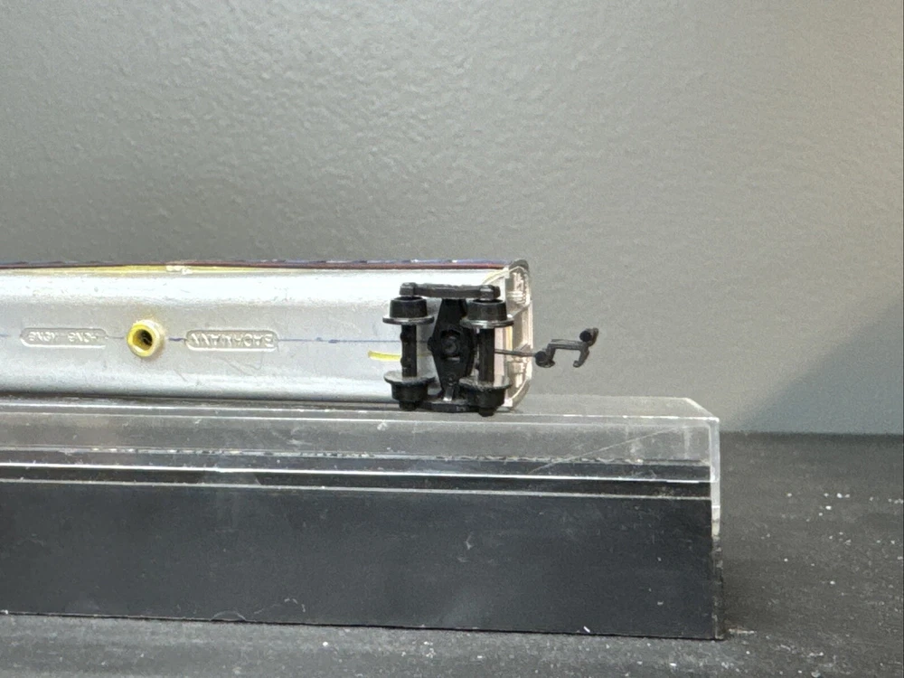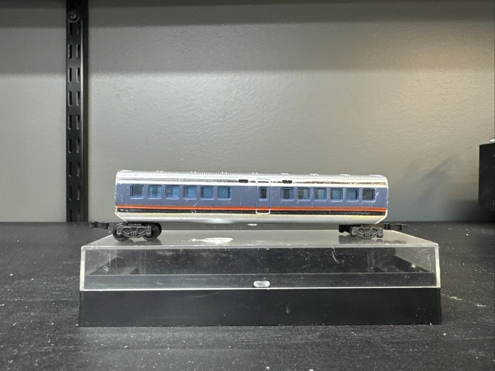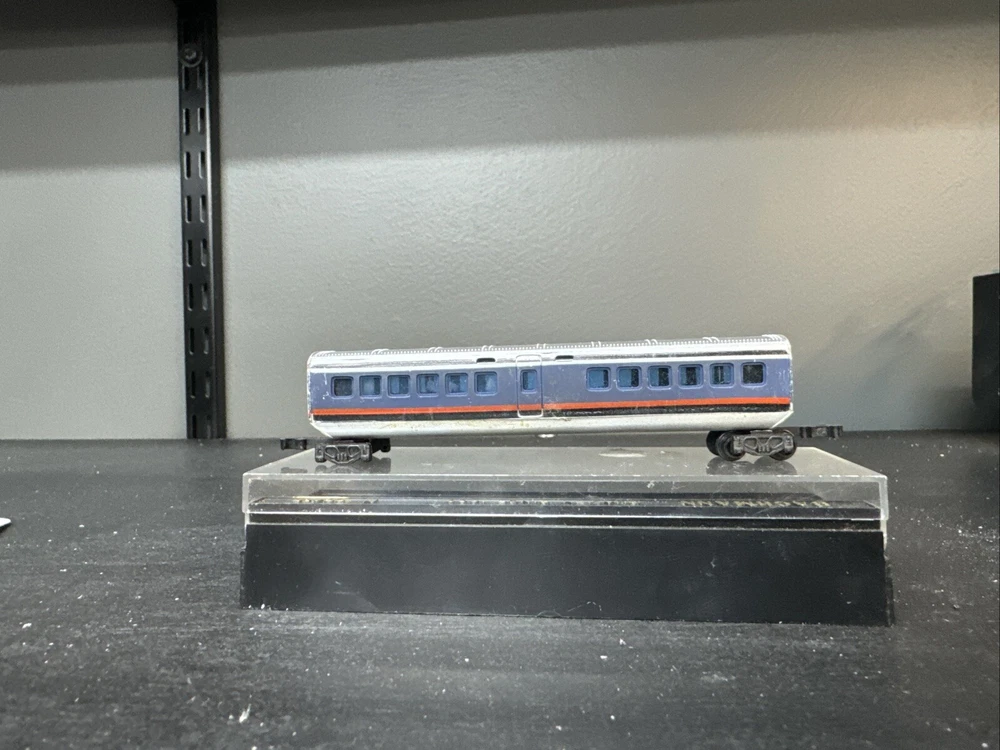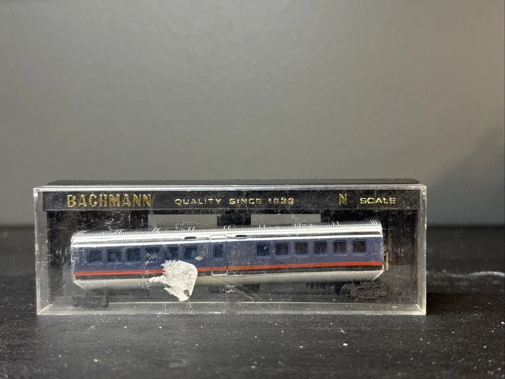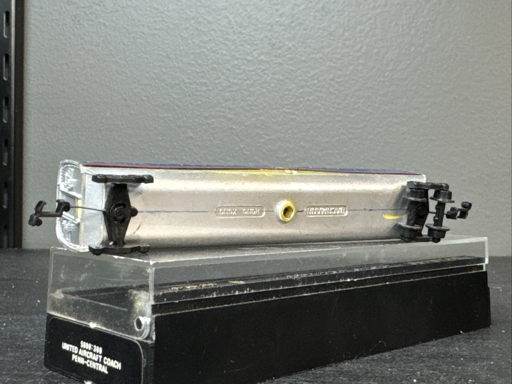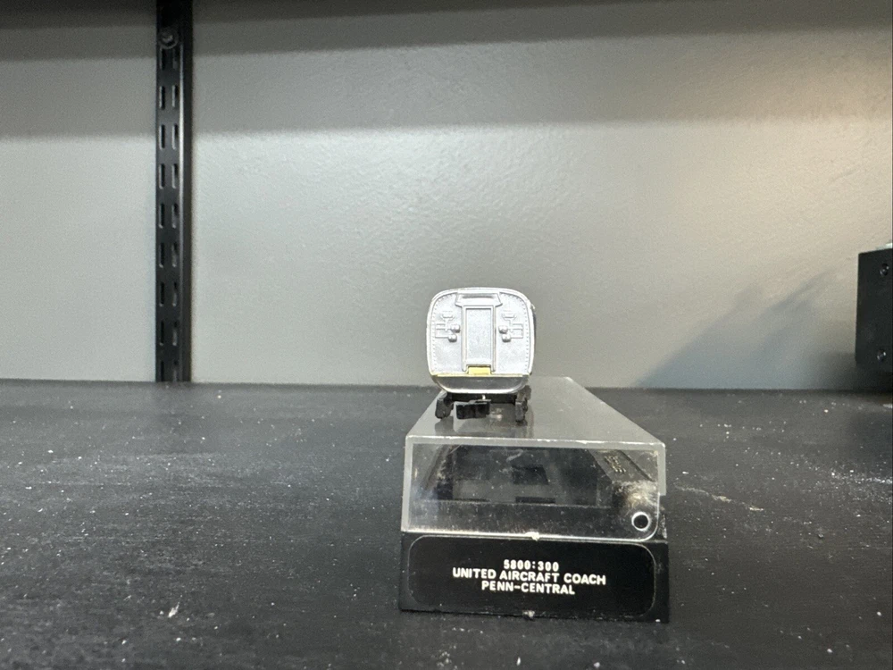 Sold as-is for parts. Missing two axles. This N gauge Bachmann passenger car is perfect for any model railroad enthusiast looking to add to their collection. The United Aircraft Turbo Train Coach Penn Central design is ASIS and will make a great addition to any layout. The 1:160 scale and unit type of unit make it a unique piece to have. The brand, Bachmann, is known for their high-quality model trains and this N gauge passenger car is no exception. It is perfect for those who enjoy collecting unique pieces and adding them to their layout. Whether you are a seasoned collector or just starting out, this Bachmann passenger car is a great addition to any collection.