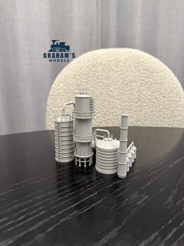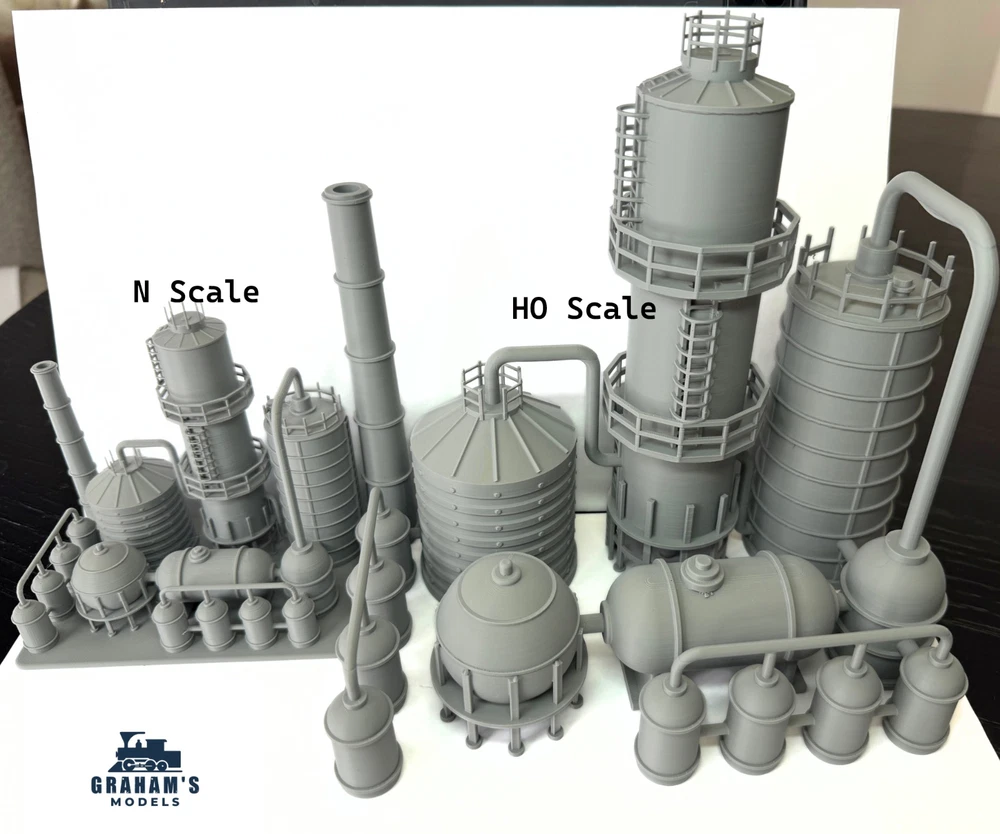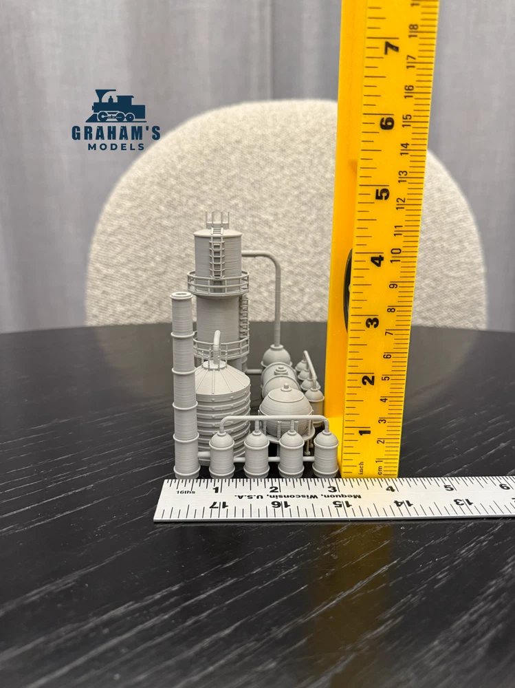 N Gauge 1:160 Scale Small Oil Refinery and tanks Built and Assembled, ready to go Perfect for your model train layout's industrial area and oil industry. This is exactly like the other version we offer, but without the base items are easier to access for detailing. This is a Graham's Models original design. All items are made in the USA in Detroit, Michigan and will be shipped in 1-3 business days depending on current demand. I do combine shipping on all orders. Please message me with any questions!