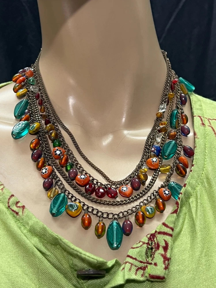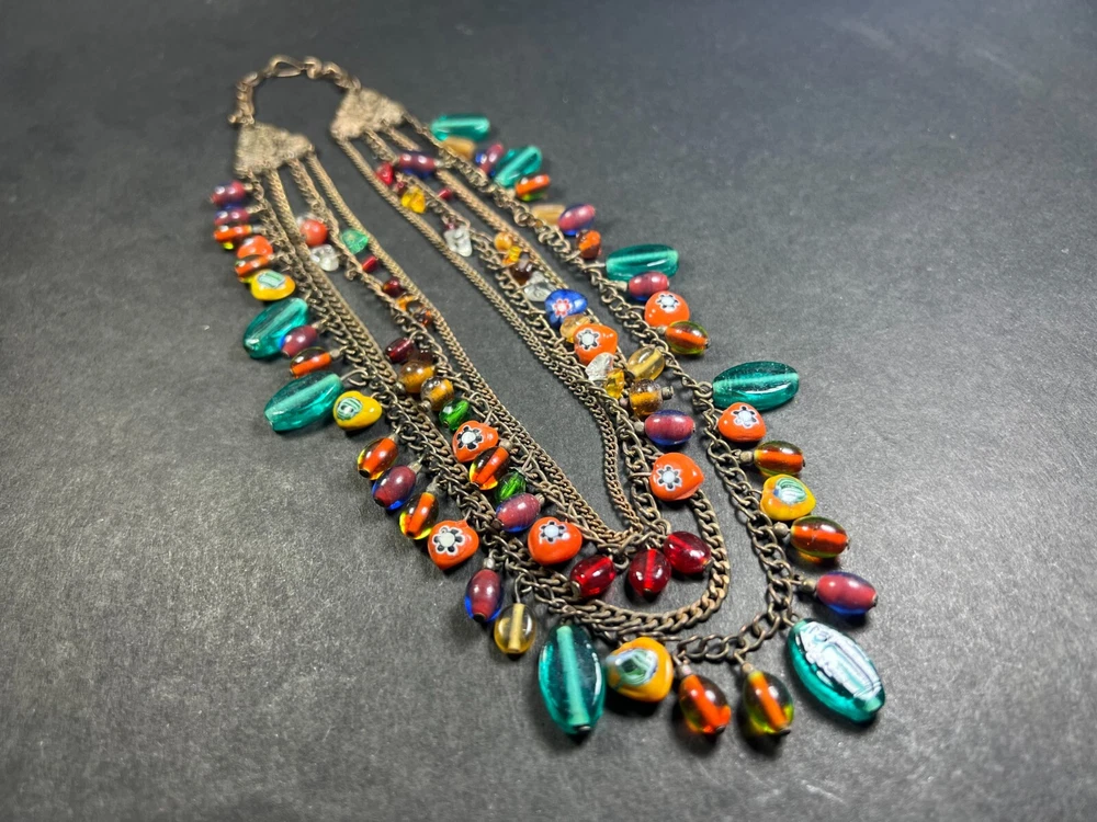 USPS/UPS No long wait Product SHIPPED FROM the USA Just 5 to 6 days delivery time at a competitive price. Love the item but not the price? Make me an offer. No reasonable offer refused. Multi color strand beads tribal Long NECKLACE It is an Ethnic Naga, tribal, strand layered design multi color beads handmade Necklace. The beads are made of Glass , resin straw in the mix metal antiqued copper tone chain. It is a very well made and (Brand new) Necklace from India. You can wear it as an ethnic tribal Jewelry or use it as a casual Jewelry. All these handmade Product's size may vary! Size :- Approx. Necklace is about 19" Long (end to end) Center drop of the necklace is 2.5" approx Material :- Glass, Resin Metal :- Mix Metals Color/t o ne :- Multi color /Copper . Weight :- 86 Grams Approx. Type :- Fish hook Quantity :- 1 pc. (N255/DBA-HQ /EDC/Sec J ) Second lot R USA 7/30/2024 FOR WHOLESALE CONTACT US Care instructions: To maintain the beauty and integrity of this handmade glass bead necklace: Avoid exposing it to harsh chemicals or extreme temperatures Store it in a cool, dry place when not worn Avoid twisting or bending the cord or chain excessively Clean with a soft cloth and mild soap solution if needed Buying handmade products comes with a range of benefits that can be quite compelling. Environmentally Friendly : Handmade items generally have a lower environmental impact compared to mass-produced goods. They often require fewer resources and less energy to create. Additionally, small-scale production usually involves less waste and fewer pollutants. Better for the Economy : Purchasing handmade products supports local artisans and small businesses. This not only helps create jobs but also keeps money within the community, which can contribute to a more robust local economy. Purchases You Can Feel Good About : Buying handmade can give you a sense of satisfaction knowing that your purchase supports individual creators and ethical practices. It often involves fair trade practices and contributes to sustainable economic development. You Will Feel the Human Touch : Handmade items often carry a unique personal touch that mass-produced items lack. The craftsmanship and attention to detail in handmade products reflect the skill and passion of the maker, making each piece distinct and special. Value Over Time : Handmade products, particularly those that are well-crafted, can appreciate in value over time. For example, antiques or heirloom-quality items often gain sentimental and monetary value as they age, making them potentially valuable investments. Overall, choosing handmade products can lead to a more thoughtful, sustainable, and rewarding shopping experience.