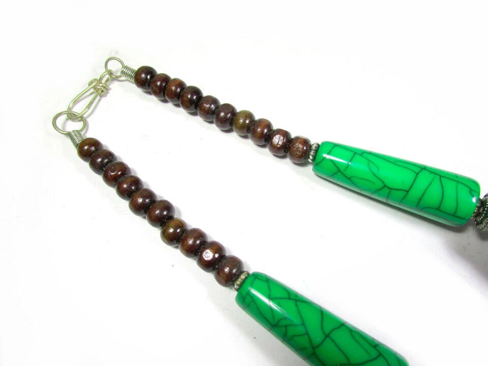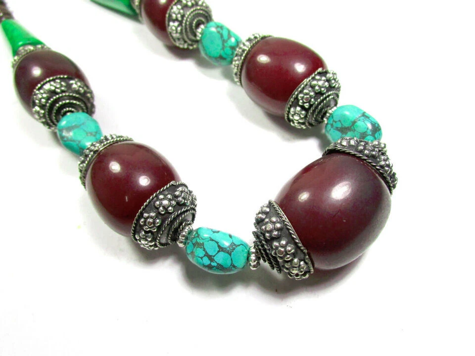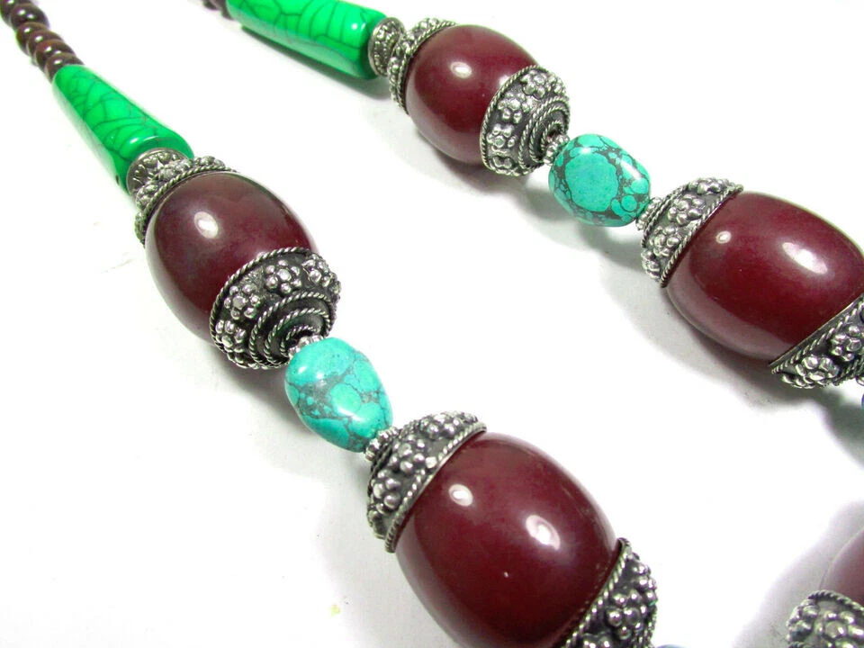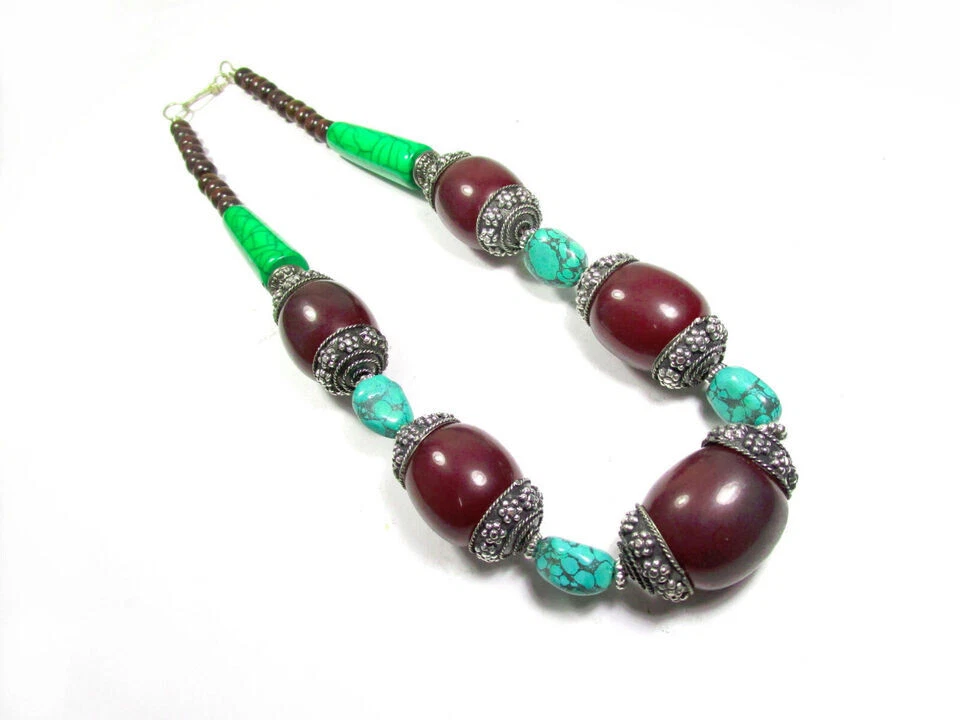 USPS No long wait Product SHIPPED FROM the USA Just 5 to 6 days delivery time at a competitive price. Love the item but not the price? Make me an offer. No reasonable offer refused. Resin Bead Necklace This is a lovely ethnic Tibetan maroon , turquoise, green color resin Necklace from India. The small size brown color beads are made of Wood. You can wear it as an ethnic tribal piece or use it as a belly dancing jewelry. Very well made (Brand new) . Size :- Approx. Necklace is about 2 4.4 " Long (end to end) The Maroon color beads are about 1.8" Wide with silver tone cap Material :- Wood, Resin . Metal :- Mixed Metals Weight :- 1 50 Grams Approx. Type :- Fish Hook Qty :- 1 pc. (N5164/JFA-SHP/B) R USA 7/10/2024 Sec B FOR WHOLESALE CONTACT US Care instructions: To maintain the beauty and integrity of this handmade glass bead necklace: Avoid exposing it to harsh chemicals or extreme temperatures Store it in a cool, dry place when not worn Avoid twisting or bending the cord or chain excessively Clean with a soft cloth and mild soap solution if needed Buying handmade products comes with a range of benefits that can be quite compelling. Environmentally Friendly : Handmade items generally have a lower environmental impact compared to mass-produced goods. They often require fewer resources and less energy to create. Additionally, small-scale production usually involves less waste and fewer pollutants. Better for the Economy : Purchasing handmade products supports local artisans and small businesses. This not only helps create jobs but also keeps money within the community, which can contribute to a more robust local economy. Purchases You Can Feel Good About : Buying handmade can give you a sense of satisfaction knowing that your purchase supports individual creators and ethical practices. It often involves fair trade practices and contributes to sustainable economic development. You Will Feel the Human Touch : Handmade items often carry a unique personal touch that mass-produced items lack. The craftsmanship and attention to detail in handmade products reflect the skill and passion of the maker, making each piece distinct and special. Value Over Time : Handmade products, particularly those that are well-crafted, can appreciate in value over time. For example, antiques or heirloom-quality items often gain sentimental and monetary value as they age, making them potentially valuable investments. Overall, choosing handmade products can lead to a more thoughtful, sustainable, and rewarding shopping experience.
