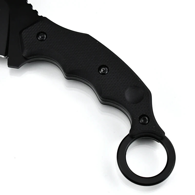 This ain't your average fixed blade. This is a beast built for serious carry—designed with a tactical profile, full-fisted grip, and a wicked wide drop point blade. Whether you’re running security, busting through brush, or just like a blade that means business, this one’s for you. Crafted from N690 steel , it holds a sharp edge like it’s mad at the world. The blade measures 3.46 inches long and 0.14 inches (3.5mm) thick, with a black finish that reduces glare and adds attitude. The full length comes in at 8.27 inches , giving you power without being a burden. The handle’s 4.25 inches , contoured with finger grooves for a solid grip and finished off with a tactical ring pommel for fast draws, reverse grips, or just showing off. Sheath? You bet. It comes with a molded ABS sheath and a high-strength belt clip that locks up tight but draws fast when you need it. The jimping on the spine and choil gives you extra control where it counts. Specs: Blade Material: N690 stainless steel Blade Thickness: 0.14 in (3.5 mm) Blade Length: 3.46 in (88 mm) Handle Length: 4.25 in (108 mm) Overall Length: 8.27 in (210 mm) Net Weight: 6.24 oz (177 g) Gross Weight: 10.58 oz (300 g) with sheath Sheath: ABS, tactical belt clip included Profile: Wide drop point with jimped spine Grip: Textured synthetic with ring pommel Solid. Sharp. Built like a fist wrapped in steel. This is one of those blades that’ll earn its spot on your belt real quick. Ships from Texas. Remember, stay sharp, stay ready, shoot straight!