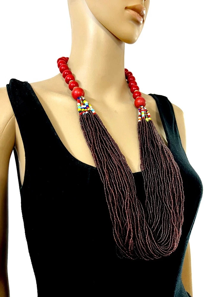 USPS No long wait Product SHIPPED FROM the USA Just 5 to 6 days delivery time at a competitive price. OFFER ME THE PRICE Tribal Multi-Color Strand Long Handmade Necklace This stunning ethnic necklace features 48 strands of Naga glass beads, interspersed with wood and brass-tone beads, all handcrafted in India. It’s finished with a distinctive bovine bone piece at the closure, adding a touch of authenticity and charm. Length: Approx. 33.5 inches (end to end) Materials: Bovine bone, glass, wood, brass-tone beads Color/Tone: Multi-color with brass accents Weight: Approx. 230 grams Style: Versatile as ethnic tribal jewelry or casual fashion accessory Note: As a handmade item, size and appearance may vary slightly Embrace the rich cultural heritage and vibrant style with this eye-catching necklace! This versatile necklace can be worn as a statement piece of ethnic tribal jewelry or as a casual accessory. Each handmade piece is unique, so size and design may vary slightly. Brand new and expertly crafted, this necklace is a distinctive addition to any jewelry collection. An ideal gift for the upcoming holidays, blending cultural richness with contemporary style. Please note that due to the handmade nature of the product, sizes may vary slightly. Buying handmade products comes with a range of benefits that can be quite compelling. Environmentally Friendly : Handmade items generally have a lower environmental impact compared to mass-produced goods. They often require fewer resources and less energy to create. Additionally, small-scale production usually involves less waste and fewer pollutants. Better for the Economy : Purchasing handmade products supports local artisans and small businesses. This not only helps create jobs but also keeps money within the community, which can contribute to a more robust local economy. Purchases You Can Feel Good About : Buying handmade can give you a sense of satisfaction knowing that your purchase supports individual creators and ethical practices. It often involves fair trade practices and contributes to sustainable economic development. You Will Feel the Human Touch : Handmade items often carry a unique personal touch that mass-produced items lack. The craftsmanship and attention to detail in handmade products reflect the skill and passion of the maker, making each piece distinct and special. Value Over Time : Handmade products, particularly those that are well-crafted, can appreciate in value over time. For example, antiques or heirloom-quality items often gain sentimental and monetary value as they age, making them potentially valuable investments. Overall, choosing handmade products can lead to a more thoughtful, sustainable, and rewarding shopping experience. FOR WHOLESALE CONTACT US N7588/JFA-HQ/D) R USA 7/10/2024 Sec D