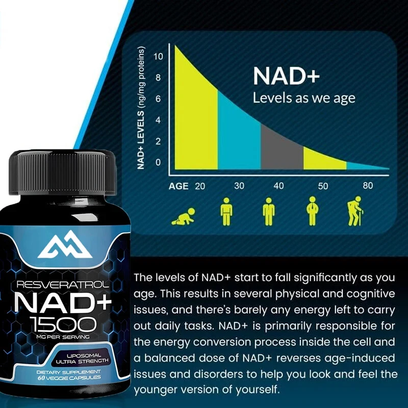 Use NAD+capsules to release the potential of cells. High quality formula, each containing 1500 milligrams of NAD+dose, provides necessary support for your cellular and overall health. 90 pills per bottle, effective supplement for 45 days NAD+is an important coenzyme involved in many biological processes, including DNA repair, energy production, and cellular metabolism. As age increases, NAD+levels naturally decrease, leading to decreased energy, cognitive function, and overall vitality. These NAD+capsules are designed to help increase NAD+levels, help combat fatigue, contribute to healthy aging, and support optimized cell function. : Two capsules per day can help you experience the benefits of enhancing energy, improving cognitive function, and youthful vitality. Experience the differences, as this scientifically supported formula can rejuvenate your cells, support DNA repair, and promote healthy metabolism. Rediscovering the energy and mental clarity that thrive in your daily life Discover the transformative potential of NAD+, seize the opportunity, and unleash the true vitality of your body. Don't wait - order now and start living a life full of energy, resilience, and happiness