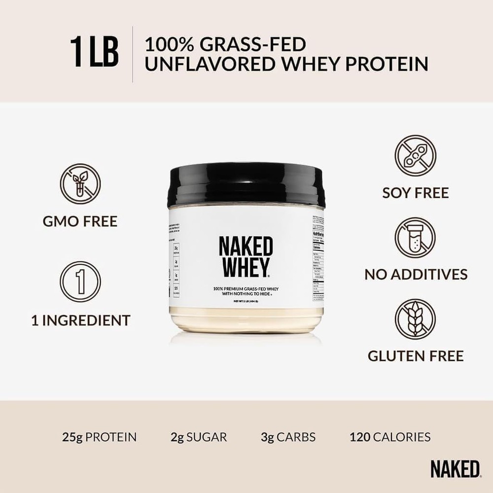 NAKED Whey 1Lb - Only 1 Ingredient, Grass Fed 1 Pound (Pack of 1)