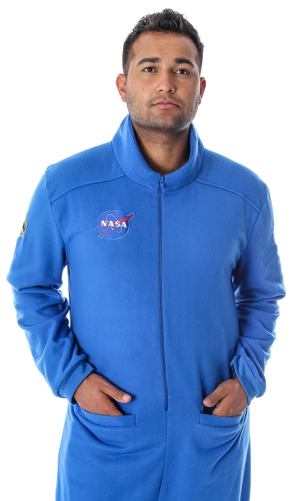 For over 60 years NASA has inspired people young and old alike that the stars are the limit, literally! This NASA one-piece pajama outfit has a baggy loose fit and is perfect for lounging around in! It features 3 high-quality embroidered patches on it, 1 NASA Meatball logo patch on the front, An Atlantis STS-132 Space Shuttle patch on the right sleeve, and an American flag patch on the left sleeve. The pajama set has 2- hand deep front pockets and a full zip closure all the way up to the fold-over collar. This is the perfect NASA costume union suit for hanging out in ultimate comfort! It is made of 100% polyester fleece fabric. The model in this photo is 6 feet tall and is and is wearing size L/XL. These are the best! NASA Men's Space Shuttle Astronaut Costume One Piece Pajama Union Suit (L/XL) For over 60 years NASA has inspired people young and old alike that the stars are the limit, literally! This NASA one-piece pajama outfit has a baggy loose fit and is perfect for lounging around in! It features 3 high-quality embroidered patches on it, 1 NASA Meatball logo patch on the front, An Atlantis STS-132 Space Shuttle patch on the right sleeve, and an American flag patch on the left sleeve. The pajama set has 2- hand deep front pockets and a full zip closure all the way up to the fold-over collar. This is the perfect NASA costume union suit for hanging out in ultimate comfort! It is made of 100% polyester fleece fabric. The model in this photo is 6 feet tall and is and is wearing size L/XL. These are the best! Product Details Color Blue Size Large/X-Large Brand Intimo Feature NASA PAJAMA PANTS THAT ARE SUPER SOFT BUT MADE TO LAST - Intimo specializes in high-quality, sleepwear, underwear, and more for men, women, boys, girls, toddlers, and infants that you will love!