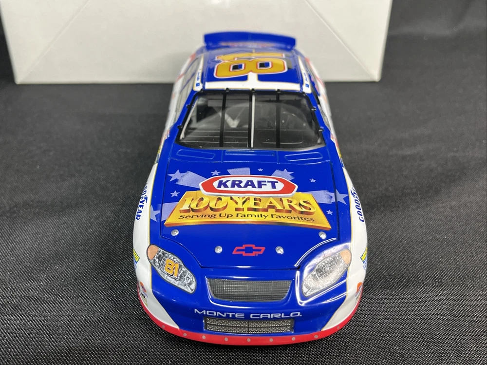 This is a 1:24 scale diecast model of a Chevrolet Monte Carlo raced by Jason Keller in the 2003 NASCAR Daytona series. It features a multi-color design celebrating the 100th anniversary of Kraft. Produced by Action as part of their racing collectables series, this limited edition model also serves as an advertising specimen for the Kraft brand. Packaging may show signs of wear. SB