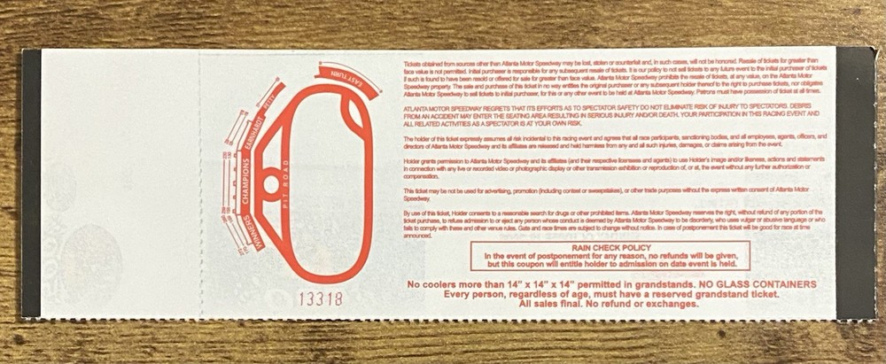 NASCAR Atlanta Motor Speedway 2006 Winner Tony Stewart Ticket Stub