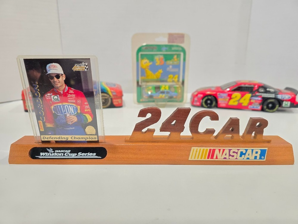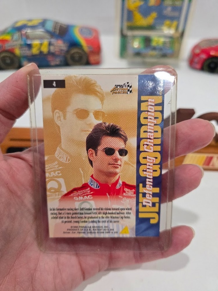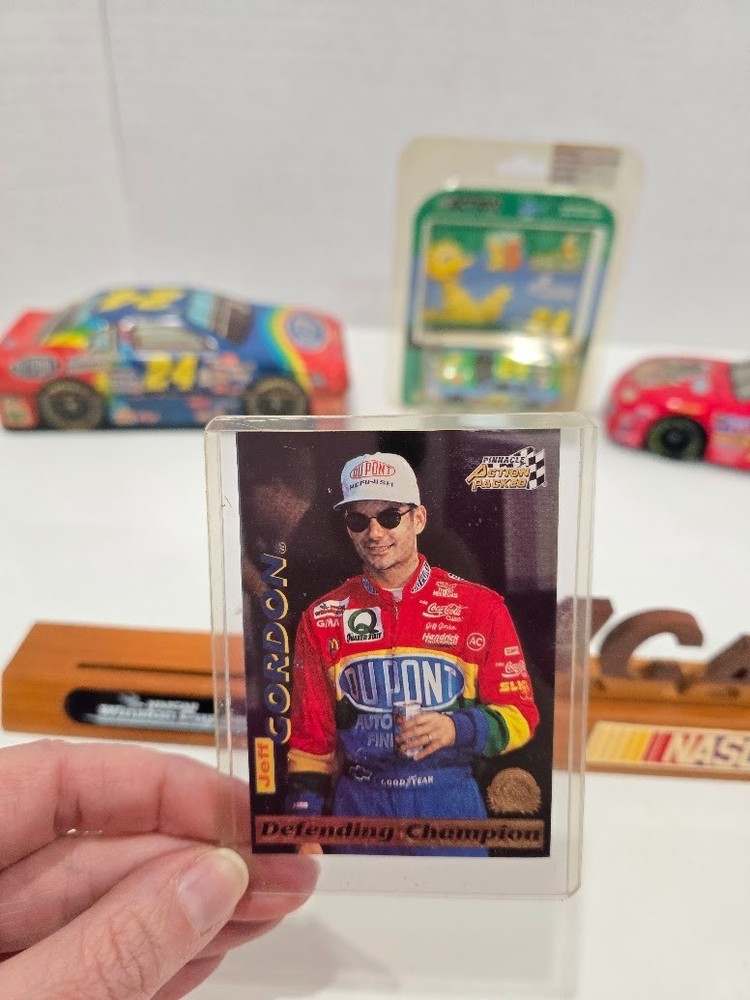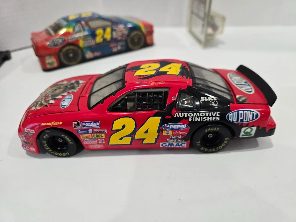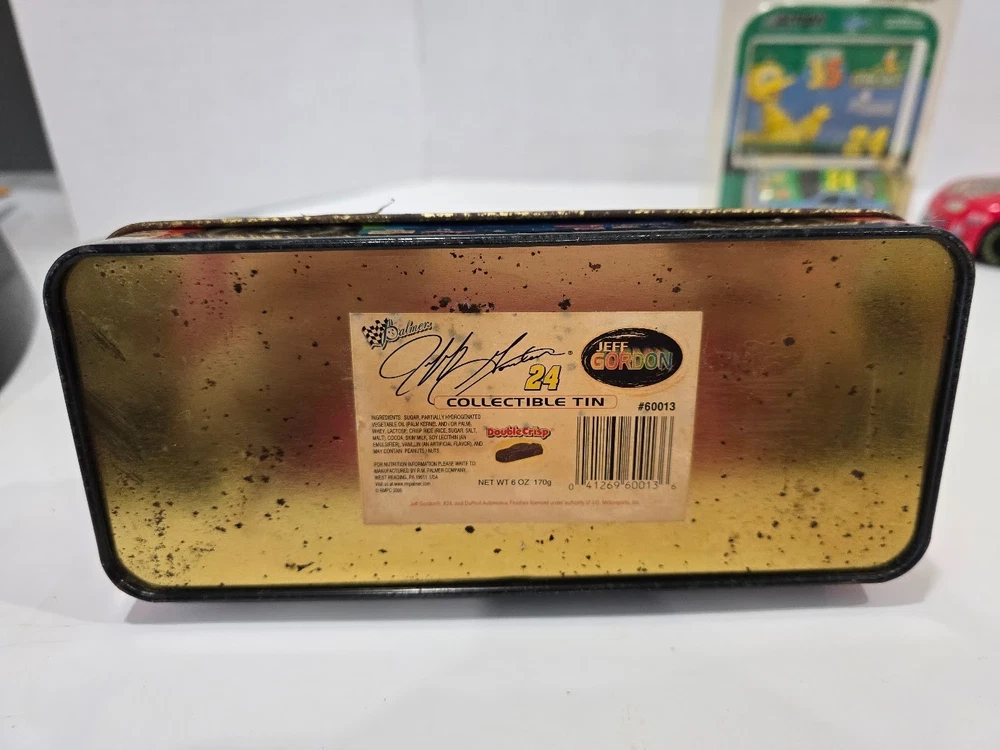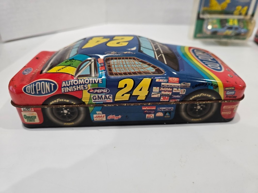 NASCAR Jeff Gordon Lot Items are well worn. The collectors tin has a lot of rust. Please see all photos.