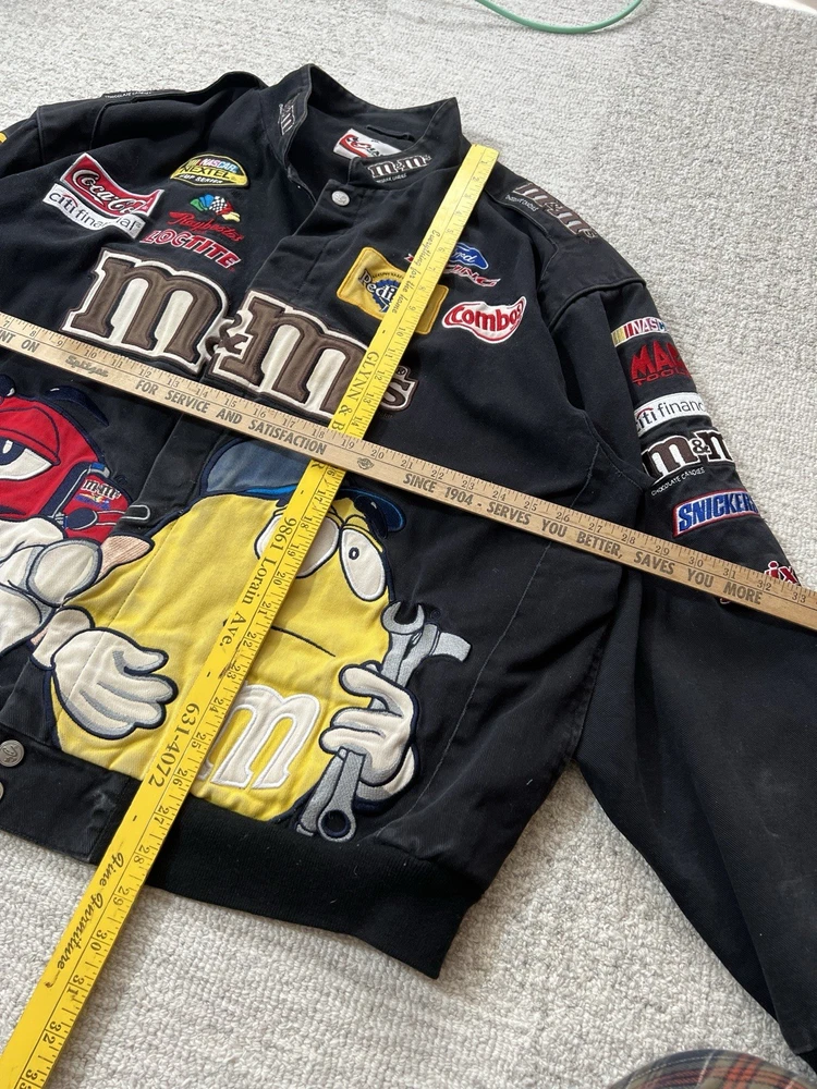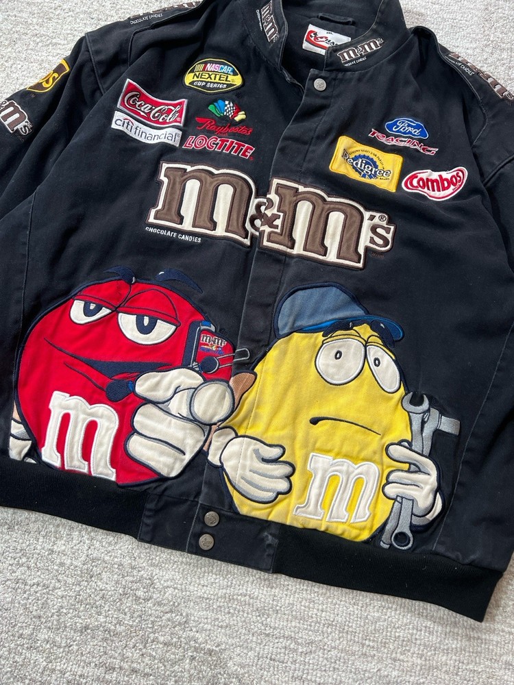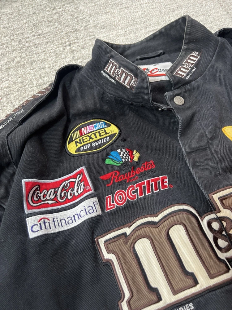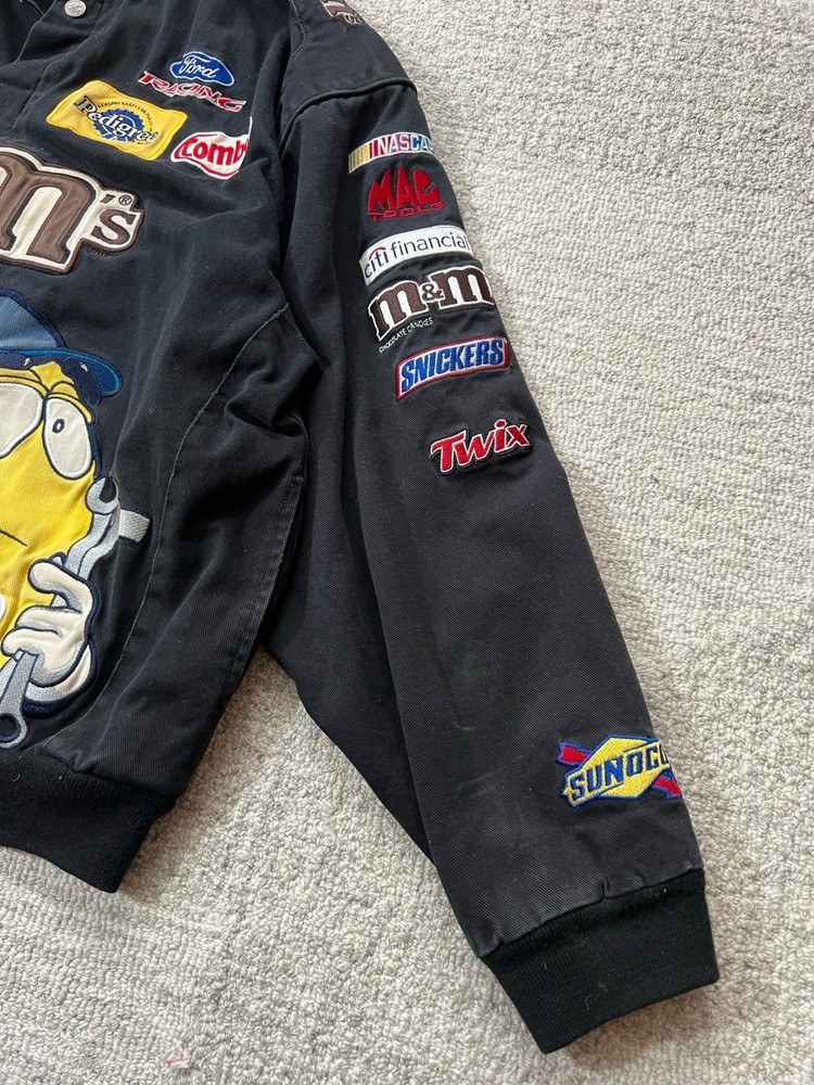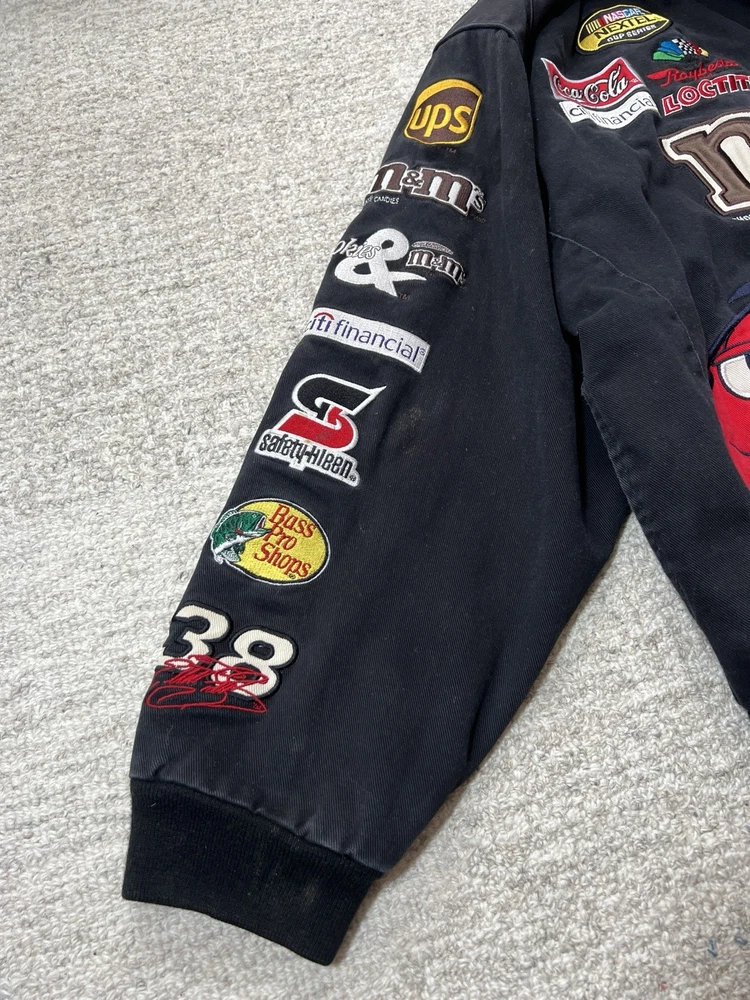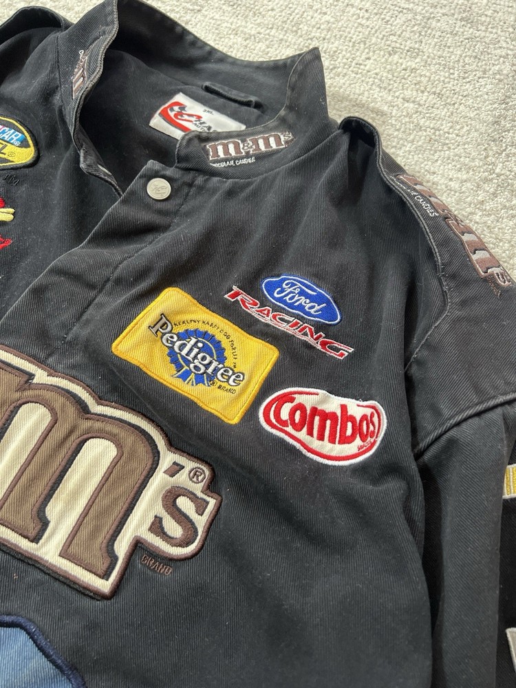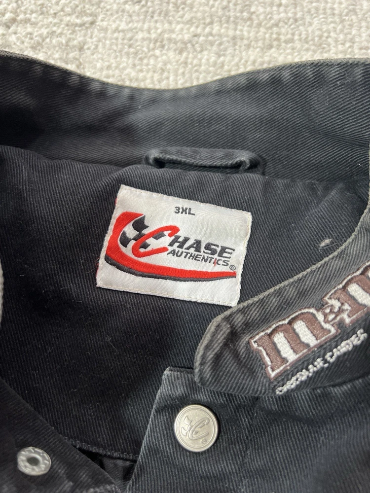 Please see pictures for measurements and condition. This jacket has some blemishes throughout. Feel free to send me a message with any questions or offers, thanks for checking out my listing! :) - The NASCAR M&M Jacket in size 3XL is an authentic and officially licensed vintage racing coat featuring Dale Earnhardt Jr. and Elliott Sadler as the featured drivers. This black jacket showcases the branding of Chase, the league of NASCAR, and the team of Robert Yates Racing. Perfect for any auto racing fan looking to show their support for these iconic drivers and teams in style. Ideal for staying warm while representing your favorite racing stars.