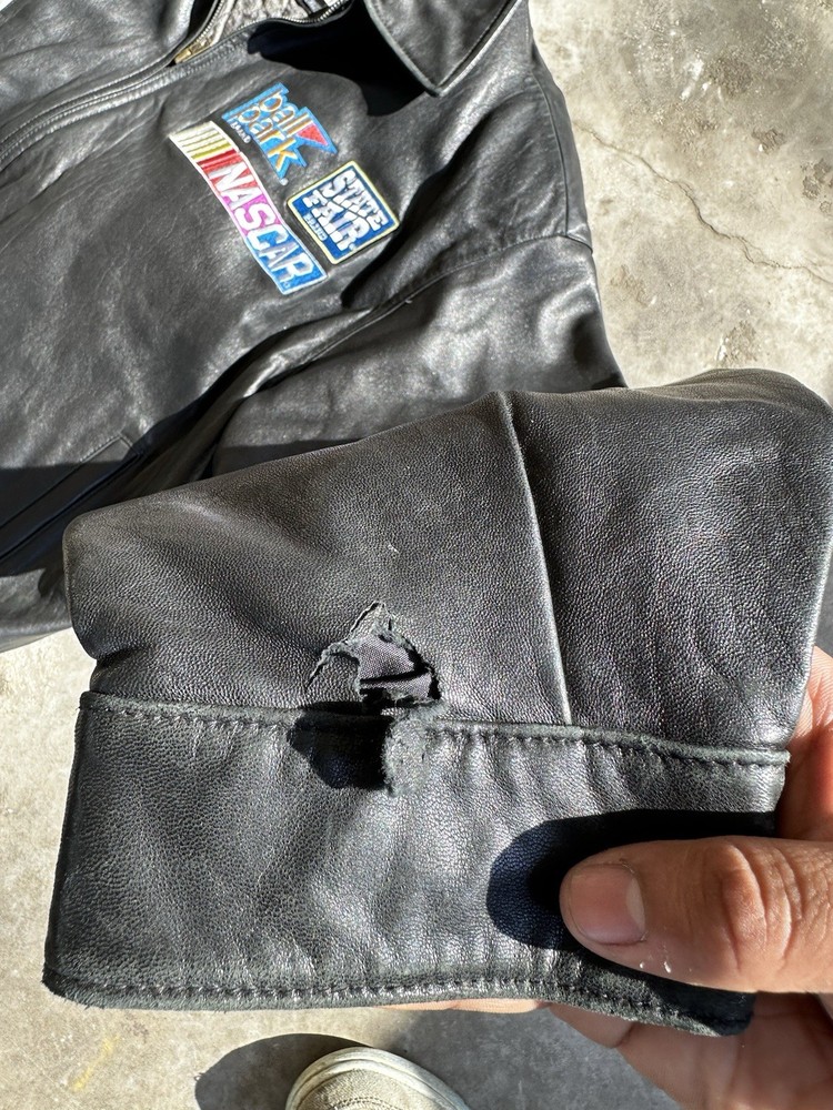 This NASCAR leather jacket is a fantastic find for any racing enthusiast! The high-quality leather feels durable, and the bold NASCAR logo adds a cool, sporty vibe. Though there's a tiny hole on the sleeve, it doesn’t take away from the jacket’s overall appeal. The XL fit is true to size, and the sleek black design pairs easily with any casual look. Perfect for race days or everyday wear, it’s a great way to rep your NASCAR pride. Made in China but authentic, this jacket delivers style and comfort. A must-have for fans!