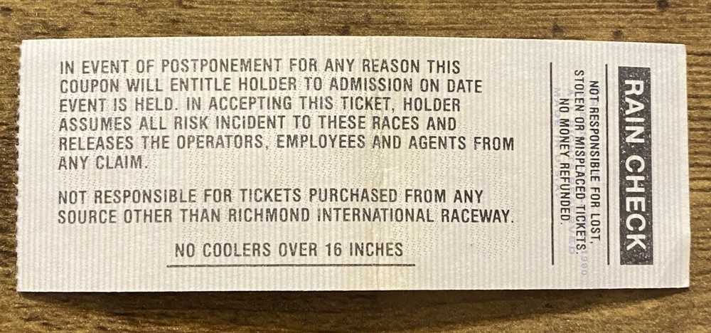 $ 5.28NASCAR Richmond 1991 Ticket Stub Winner Harry Gant Race Memorabilia
