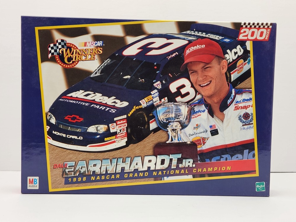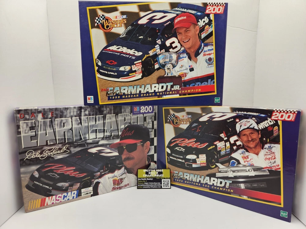 Immerse yourself in the high-octane world of NASCAR with the Winner's Circle 200-piece puzzle, featuring the legendary Dale Earnhardt (2 Puzzles) and his son Dale Earnhardt Jr. (1 Puzzle) Each puzzle piece is crafted from high-quality paperboard, ensuring a snug fit and a smooth surface for a satisfying assembly experience. The vibrant, multi-color Earnhardt Sr. & Jr. designs captures the essence of racing and is sure to appeal to fans and puzzlers alike. This product is proudly manufactured in the United States by Milton Bradley, a name synonymous with top-notch puzzles. Recommended for ages 7 and up, it's the perfect way to engage solo or with family and friends. Whether you're a NASCAR/Earnhardt fan or just love a good puzzle, these sets promises to deliver hours of entertainment and a sense of accomplishment once completed. PLEASE REFER TO ALL PHOTOS ABOVE TO DETERMINE THE CONDITION OF ITEM AND THAT IT MEETS YOUR OWN SATISFACTION. THE PHOTOS ARE CONSIDERED TO BE PART OF MY OVERALL DESCRIPTION. I have more fun/cool items at Smittyz Oddz Endz n Collectablez . Please visit and 'favorite' my store at: https://www.ebay.com/str/smittyzoddzendzncollectablez Thank you for stopping by and viewing my page.