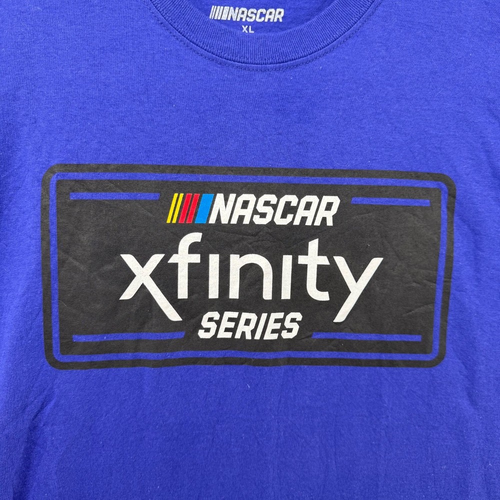 NASCAR Xfinity Series T-shirt Mens Extra Large XL Blue Short Sleeve Stock Car Buy More and Save! Combined shipping for US customers. $1.99 shipping for each additional item. Combined shipping will automatically calculate when you use the shopping cart. Fast Shipping! We ship daily. 60 Day Return Policy. Images: We strive to take photos with accurate color. Color may vary slightly based on different monitor settings.
