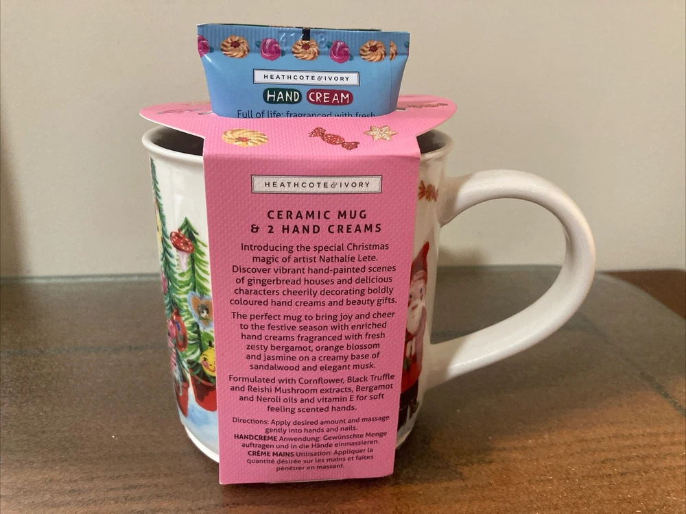3 Piece Gift Set Natalie Lete Coffee Mug with 2 Heathcote & Ivory Hand Creams New