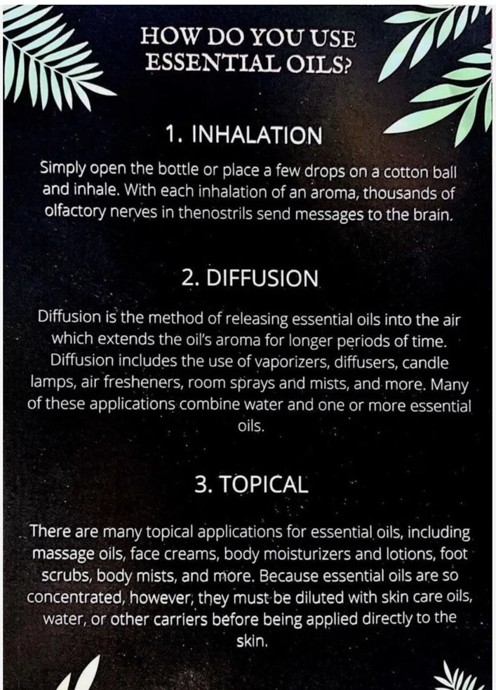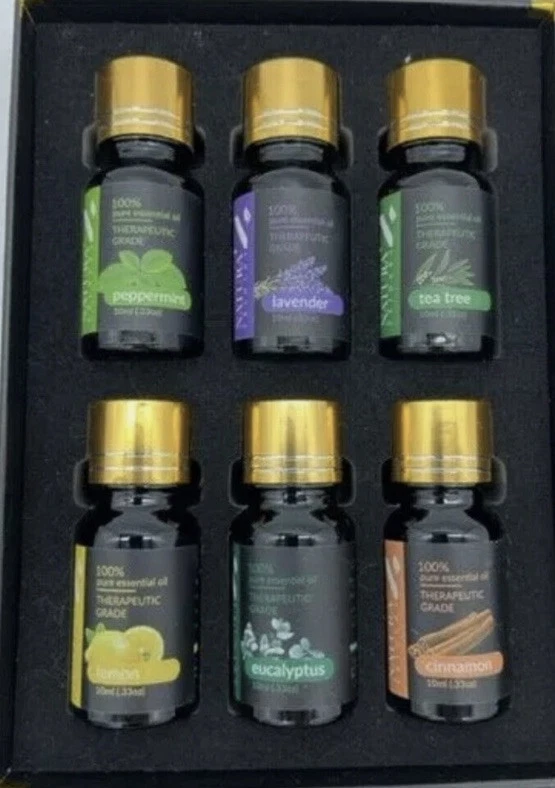 NATURA 100% pure essential oils set NATURA PRIMERA ESSENTIAL OIL SET Our sense of smell is primal, used to warn us against dangers and even help us find food. But beyond these everyday uses,our sense of smell can be used to promote well-being through the use of pure essential oils. Tea Tree Lemon Cinnamon Eucalyptus Lavender Peppermint **THESE STATEMENTS HAVE NOT BEEN EVALUATED BY THE FOOD AND DRUGADMINISTRATION. THESE PRODUCTS ARE NOT INTENDED TO DIAGNOSE, TREAT, CURE ORPREVENT ANY DISEASE.