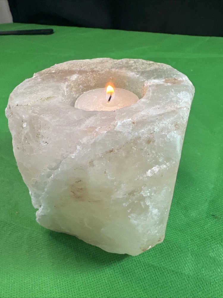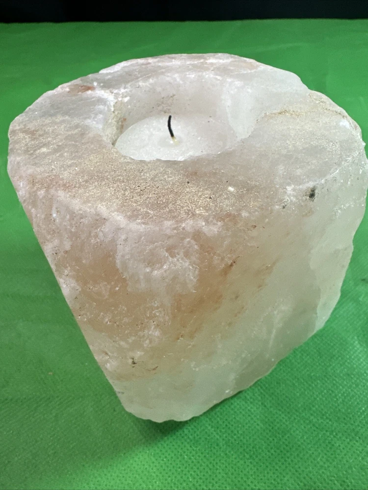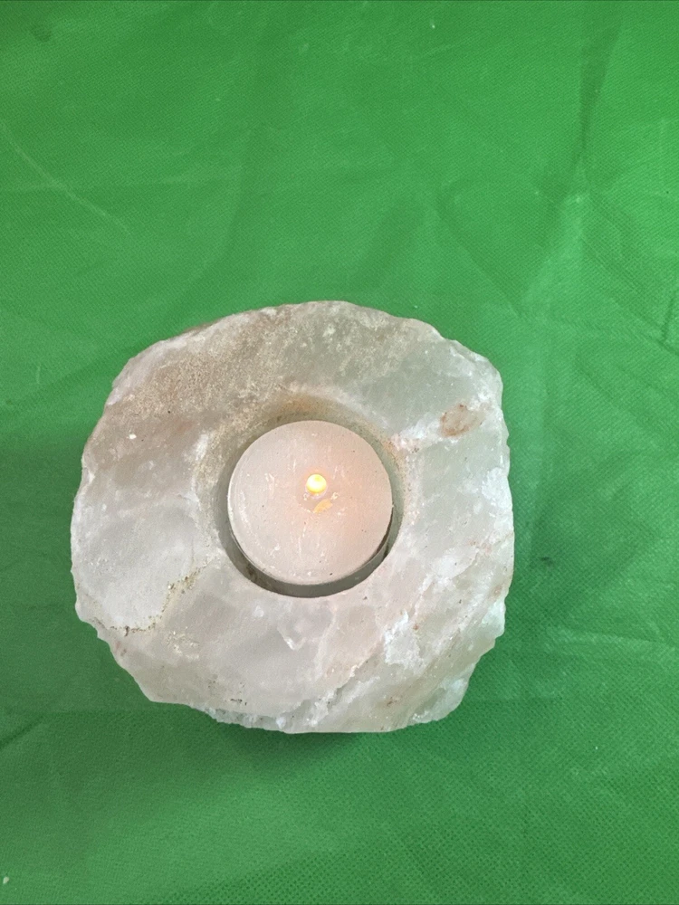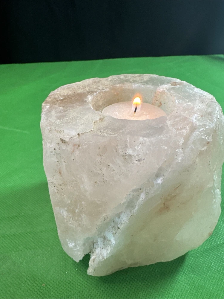 NATURAL PINK ROSE QUARTZ Crystal Stone Geode VOTIVE CANDLE HOLDER -3,5”