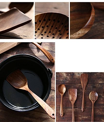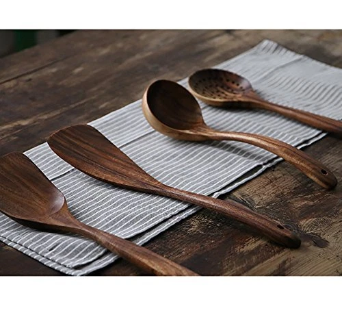 【Set of 4 Pieces】: Our kitchen wooden spoons set consists of 4 pcs kitchen spatulas. These durable wooden spoons is enough to meet all your cooking needs. 【Eco-Friendly】: The BPA free kitchen cooking utensils set is made of 100% high-quality teak wood. no peculiar smell for safe use. This wood material is hard, not easy to deform and crack. Long-term use that is still bright as new. 【Heat-Resistant & Non-Scratch】: Our wooden cooking spoon set has super heat resistance and will not melt or deform due to high temperature like rubber kitchen utensils, good heat insulation performance, and can prevent hand burns. These kitchen wooden spoons are harmless to use in any utensil or cookware. The non-scratch wooden spatula is not going to leave any scratch on your pans. 【Handmade and Durable】: Our sturdy wooden spoon set is made of high-quality natural wood, each wooden spoon has been polished many times, thoughtfully crafted, beautiful colors, unique veins, which is a gift from nature. All these kitchen utensils are made by hand, keeping in view the health standards. 【Easy to Clean & Maintain】: Easily clean the wooden spoon set with mild detergent and let it dry naturally. Do Not Soak for a long time. It is highly recommended that you smear the surface with oil once a month for better maintenance.