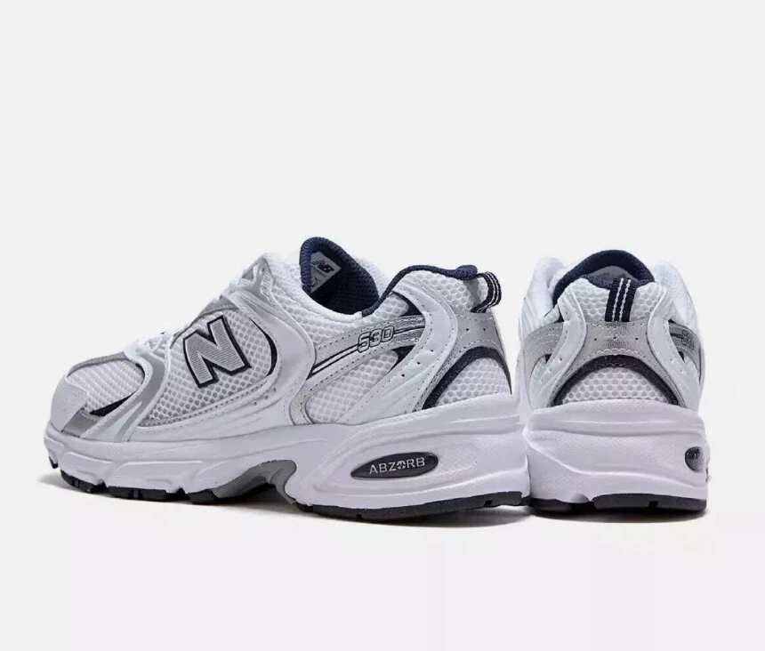 New Balance 530 Running Shoes Sneakers White Silver MR530SG New Shoes Without BOX The 530 men's sneaker is a throwback of one of our classic running shoes . This casual kick combines everyday style with modern tech. ABZORB cushioning underfoot adds superior comfort. Put a retro spin on your step with the 530 men's sneaker Sneaker Without Box New Shoe Condition
