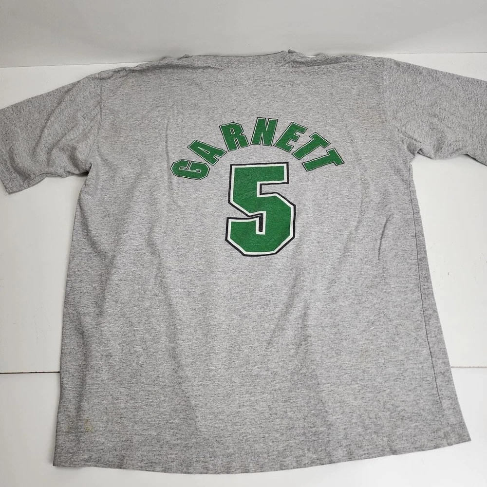 NBA Boston Celtics #5 GARNETT Gray Short Sleeve T-Shirt Men's Size L * BRAND: NBA * COLOR: Gray / Green / White * SIZE: L * LENGTH: 25" / PTP: 23" * STYLE / MODEL: NBA Boston Celtics #5 GARNETT Tee (stains) See Images! * MATERIAL: Cotton / Polyester * MADE IN: Nicaragua Pre-Owned / Used: A product that has been used previously. View our listing for full details in our description and check out our photos provided. If there are any imperfections, it will be noted in the description and/or within the provided photos. We appreciate you looking at our listing. Before placing an order, feel free to ask any questions you may have about this item. Upon receiving your order, if you are not satisfied with your order, please contact us and we will address any issue.