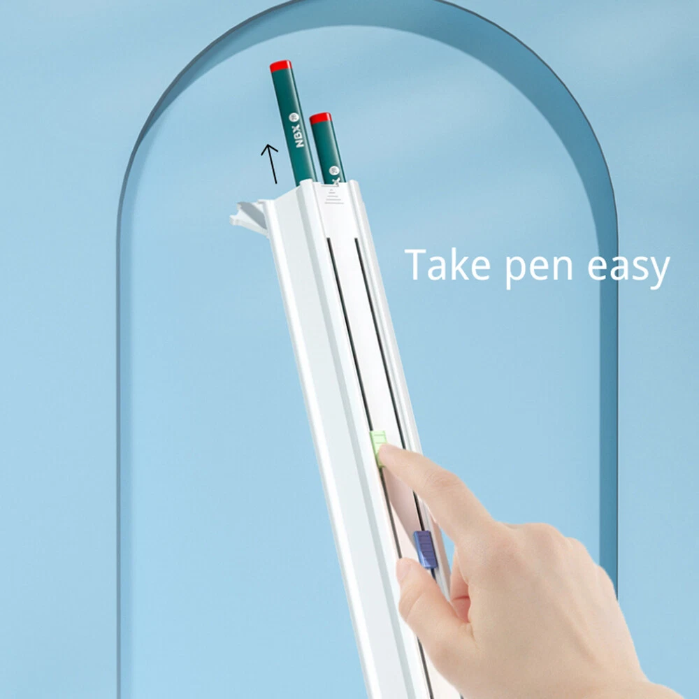 Features: 【Practical Design】The pencils can be removed from the 6-color buttons. The ruler and eraser are also easy to find in their fixed positions in the pencil case. And a detachable pencil sharpener at the bottom. It's fashionable and practical. 【Durable and Easy to Clean】This pencil case is made of high-quality ABS material, sturdy and durable, with smooth texture and easy to clean. The pen design inside the box helps prevent breakage of the pens. 【Lightweight & Portable】With its all-in-one design, it's convenient and lightweight without making other stationery dirty. It is a good choice for daily sketching. 【Perfect Gift】An original creative gift for girls, boys, classmates, students or friends as graduation gifts, birthday gifts or Christmas presents. 【Package Includes】You will receive a pencil case, which contains 6 pencils, an eraser, and a ruler to meet your child's basic learning needs for a day. Lightweight and portable, you can easily find suitable elements to improve learning efficiency. Specification: Color: Purple Pencil Box Size: 20x3cm Package Size: 22x4.5x3.8cm/8.6x1.7x1.4in Package Weight: 142g/5oz Note: Due to the different monitor and light effect, the actual color of the item might be slightly different from the color showed on the pictures. Thank you! Please allow 1-2cm measuring deviation due to manual measurement. Packing List: 1 x Pencil Box 1 x Ruler 1 x Eraser 6 x Pencil
