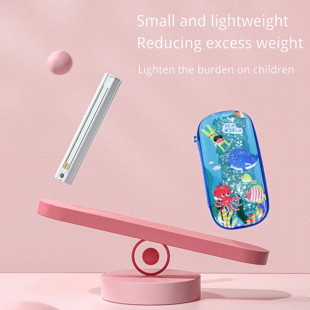 Features: 【Practical Design】The pencils can be removed from the 6-color buttons. The ruler and eraser are also easy to find in their fixed positions in the pencil case. And a detachable pencil sharpener at the bottom. It's fashionable and practical. 【Durable and Easy to Clean】This pencil case is made of high-quality ABS material, sturdy and durable, with smooth texture and easy to clean. The pen design inside the box helps prevent breakage of the pens. 【Lightweight & Portable】With its all-in-one design, it's convenient and lightweight without making other stationery dirty. It is a good choice for daily sketching. 【Perfect Gift】An original creative gift for girls, boys, classmates, students or friends as graduation gifts, birthday gifts or Christmas presents. 【Package Includes】You will receive a pencil case, which contains 6 pencils, an eraser, and a ruler to meet your child's basic learning needs for a day. Lightweight and portable, you can easily find suitable elements to improve learning efficiency. Specification: Color: Purple Pencil Box Size: 20x3cm Package Size: 22x4.5x3.8cm/8.6x1.7x1.4in Package Weight: 142g/5oz Note: Due to the different monitor and light effect, the actual color of the item might be slightly different from the color showed on the pictures. Thank you! Please allow 1-2cm measuring deviation due to manual measurement. Packing List: 1 x Pencil Box 1 x Ruler 1 x Eraser 6 x Pencil