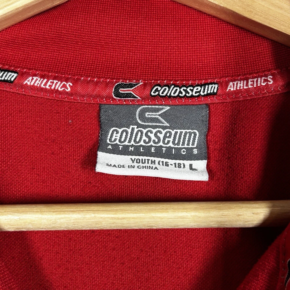 Fabric Type: Softshell Department: Unisex Kids Theme: State Occasion: Activewear Performance/Activity: Basketball, Football, Track & Field Size: 16-18 Pattern: Solid Type: Jacket Closure: Zip Outer Shell Material: Polyester Color: Red Style: Track Jacket Features: Collared, Full Zip, Water Resistant Lining Material: Polyester Vintage: No Brand: Colosseum Athletics Insulation Material: Polyester