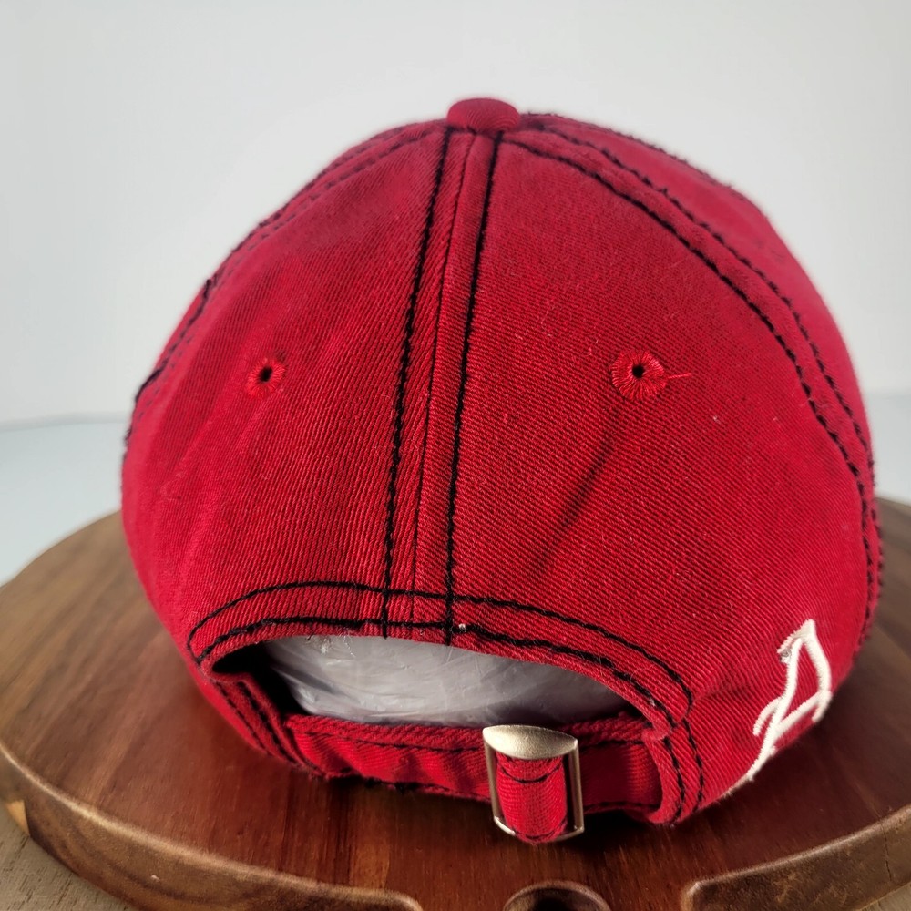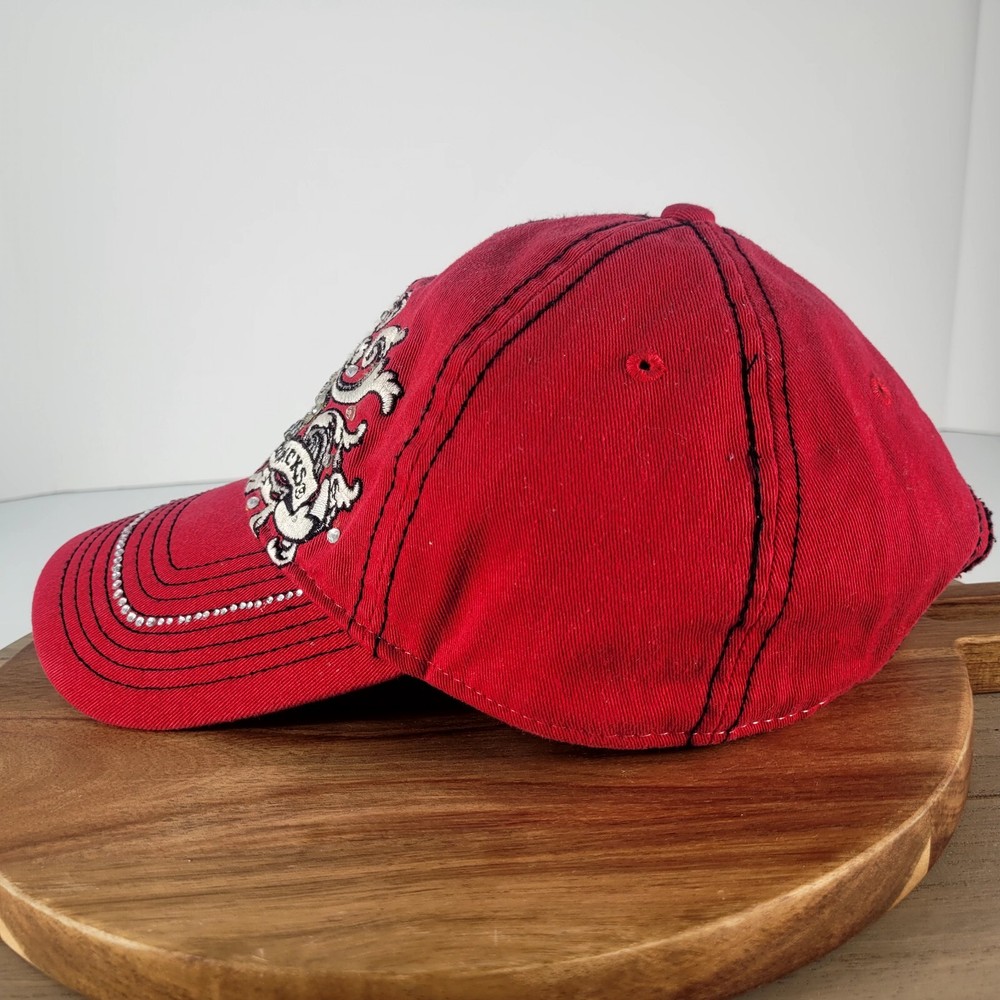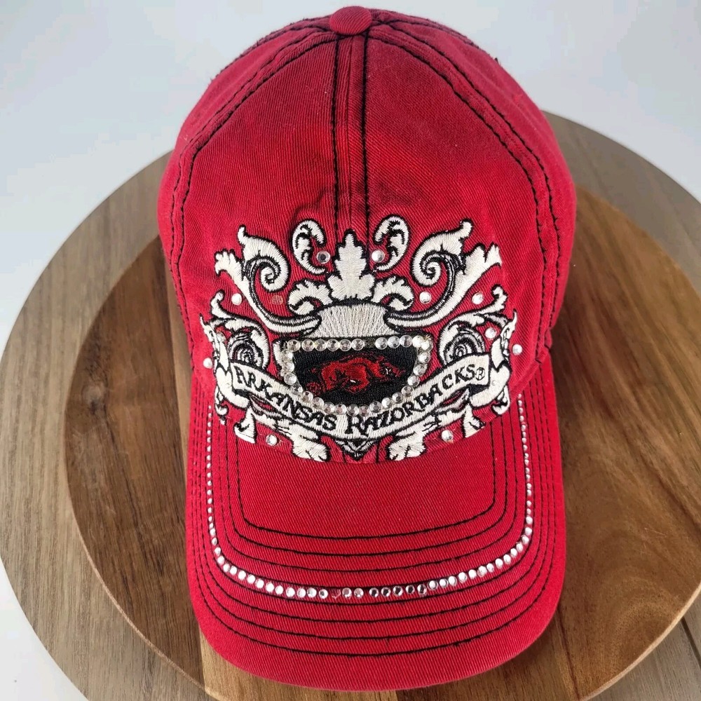 Show your support for the Arkansas Razorbacks with this stylish and adjustable women's baseball cap. The hat features the team's logo and colors in red, making it perfect for game day or everyday wear. The studded accents add a touch of flair to this already fashionable accessory. This HaT brand cap is designed for women and has a one-size-fits-all feature, making it a great gift for any Razorbacks fan. Whether you're cheering from the stands or watching from home, this hat is a must-have for any sports enthusiast. Get yours today and show your love for the Arkansas Razorbacks!