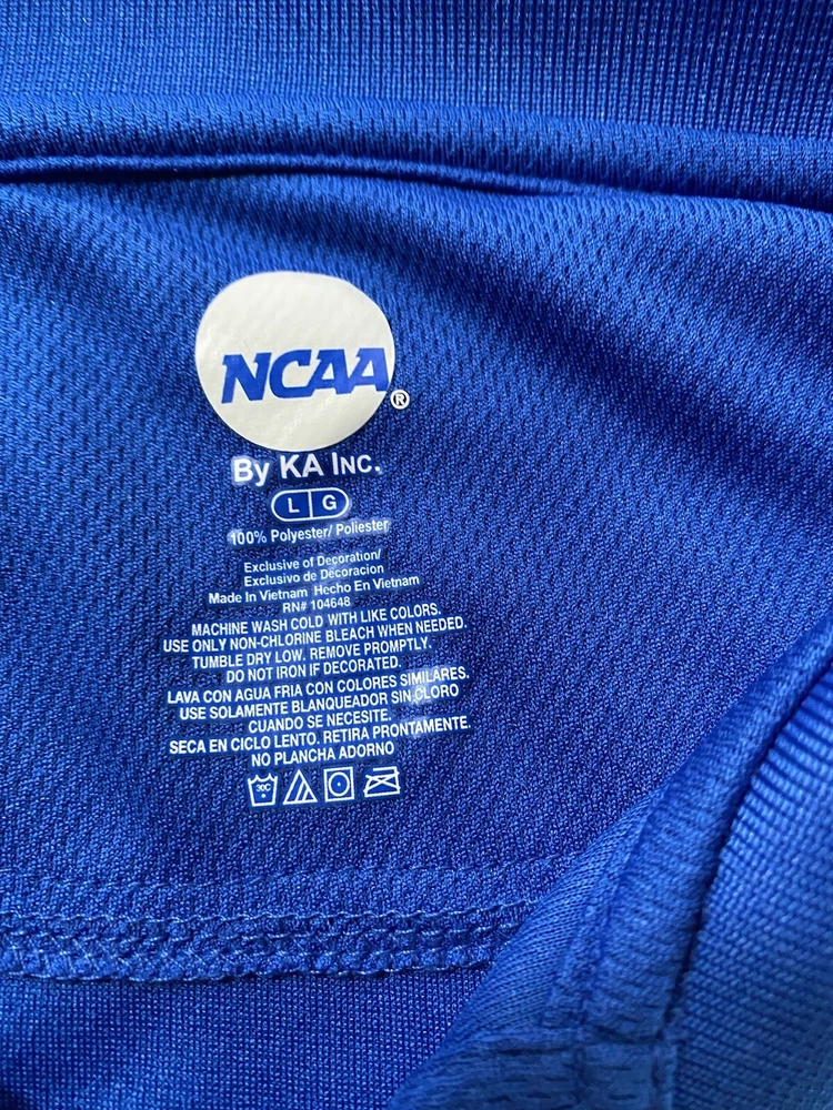 Show your love for the Kansas Jayhawks with this officially licensed NCAA Polo Shirt. This shirt is perfect for any football fan and is made from high-quality materials. The shirt features a bold red and blue design and is designed to fit men in size L. Wear this shirt to show your support for the team and make a statement wherever you go. It's perfect for game day or any casual occasion. This shirt is a must-have for any true Kansas Jayhawks fan.