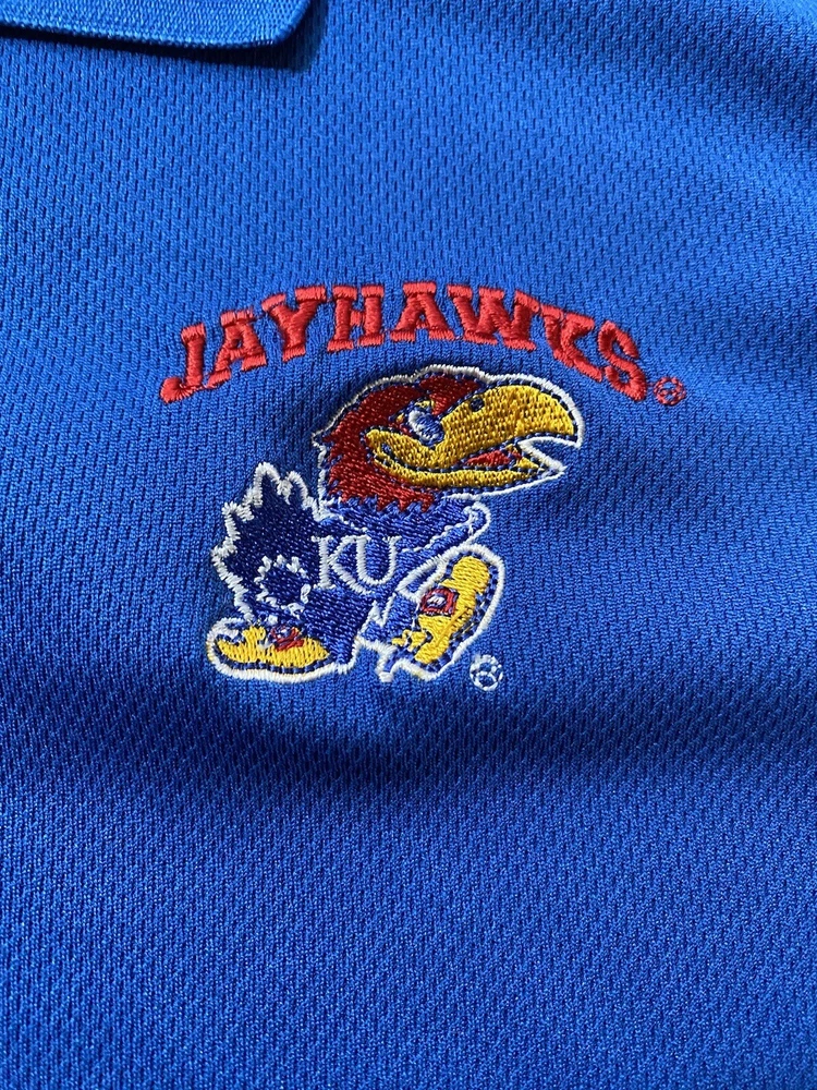 NCAA Kansas Jayhawks Polo Shirt Adult Large Red Blue Shirt Sleeve Mens