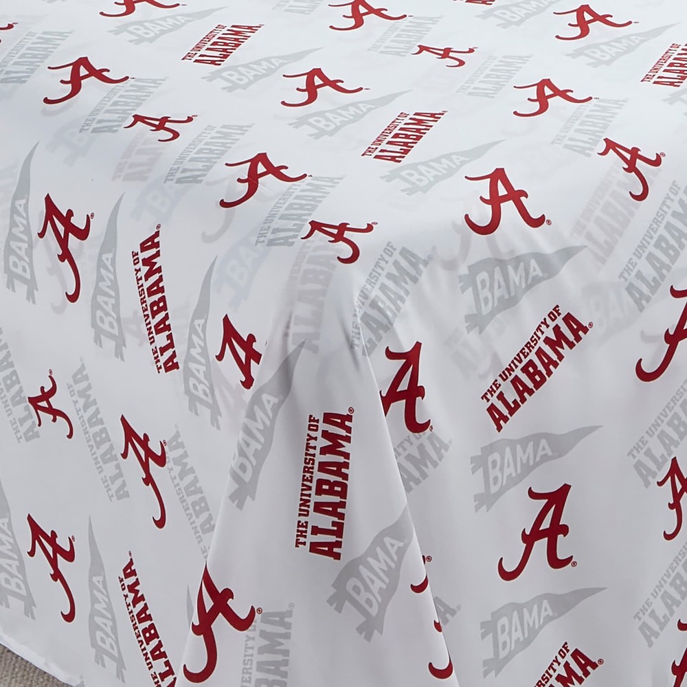 Show your team spirit with our Officially Licensed Alabama Crimson Tide NCAA Sheet Sets from Northwest. Made with ultra soft Polyester microfiber for the greatest comfort while you dream of your team's victory.The sheet set features a repeating Team Logo Design Officially Licensed NCAA Product Twin and Twin XL Sets includes 1 Fitted Sheet, 1 Flat Sheet and 1 Pillowcase Full, Queen Sets include 1 Fitted Sheet, 1 Flat Sheet and 2 Pillowcases. Machine washable Material:Polyester Microfiber 14" deep pocket Dimensions: Twin: Fitted 75" x 39", Flat 96" x 66", One Pillowcases 20" x 30"Twin XL: Fitted 80" x 39", Flat 101" x 66", One Pillowcases 20" x 30" Full: Fitted 75" x 54", Flat 96" x 81", Two Pillowcases 20" x 30" Queen: Fitted 80" x 60", Flat 102" x 90", Two Pillowcases 20" x 30" Free Shipping Over $49.99* Details NCAA Officially Licenced Alabama Crimson Tide Sheet Set Product Description: Show your team spirit with our Officially Licensed Alabama Crimson Tide NCAA Sheet Sets from Northwest. Made with ultra soft Polyester microfiber for the greatest comfort while you dream of your team's victory. The sheet set features a repeating Team Logo Design Officially Licensed NCAA Product Twin and Twin XL Sets includes 1 Fitted Sheet, 1 Flat Sheet and 1 Pillowcase Full, Queen Sets include 1 Fitted Sheet, 1 Flat Sheet and 2 Pillowcases. Machine washable Material:Polyester Microfiber 14" deep pocket Dimensions: TwinFitted 75" x 39", Flat 96" x 66", One Pillowcases 20" x 30" Twin XLFitted 80" x 39", Flat 101" x 66", One Pillowcases 20" x 30" FullFitted 75" x 54", Flat 96" x 81", Two Pillowcases 20" x 30" QueenFitted 80" x 60", Flat 102" x 90", Two Pillowcases 20" x 30"
