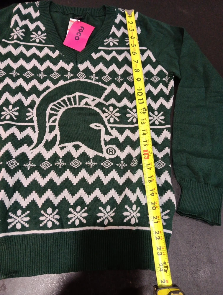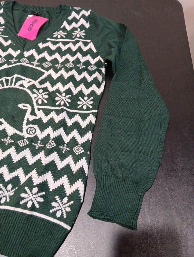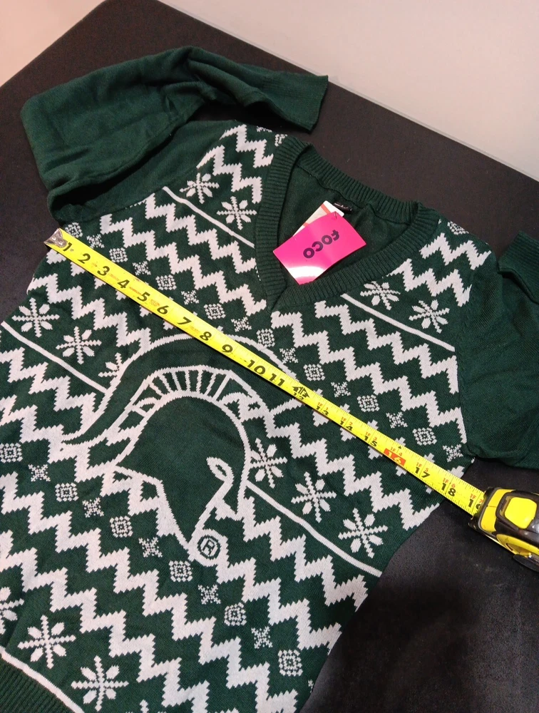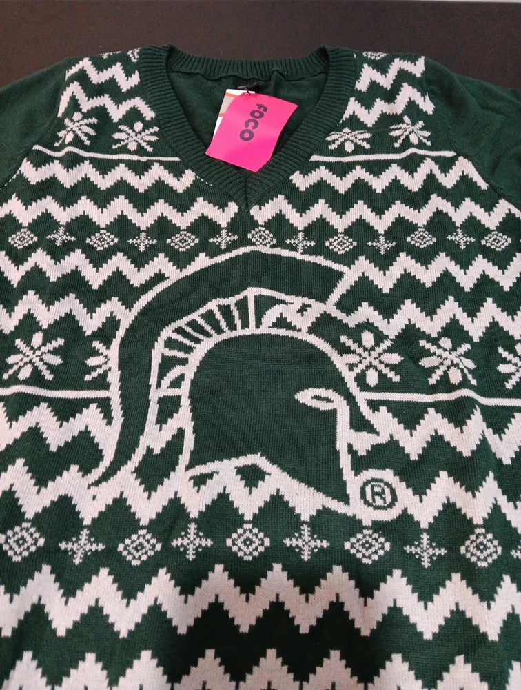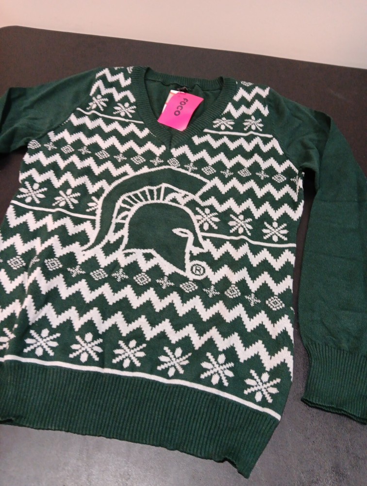 NCAA Michigan State Ugly Holiday V-Neck Sweater Large Green Team Logo