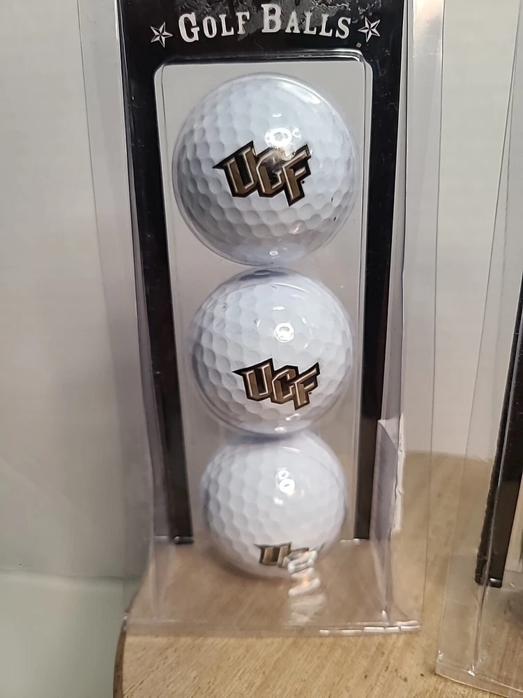 Enhance your golf game with this set of three NCAA University of Central Florida golf balls. Featuring the iconic UCF Knights logo, these balls are perfect for any fan or alumni. Made for golf enthusiasts, these balls are ideal for a day out on the greens or a casual round of mini-golf. The set includes one sleeve with three balls, making it a great addition to your golf bag. Get ready to show off your team spirit and improve your game with these UCF golf balls.